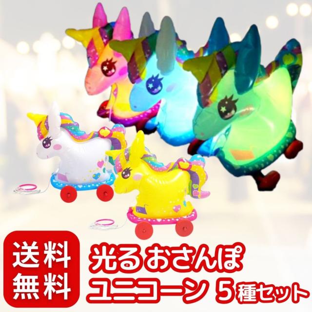 ピカピカ ゆめかわ おさんぽ 5種のユニコーン 5個 3パターンに光る〔 お祭り/イベント/子供会/露店/縁日 〕可愛い コロコロ お散歩