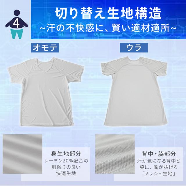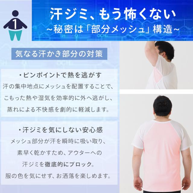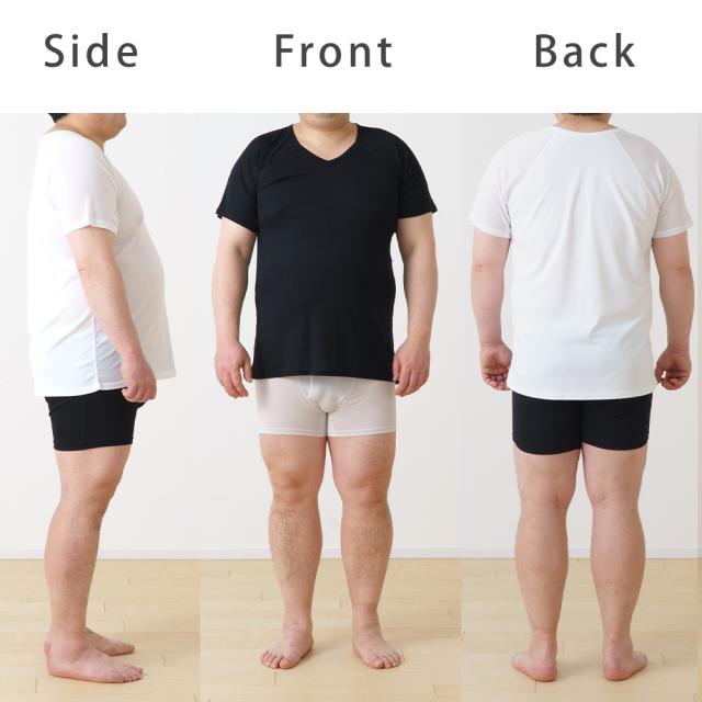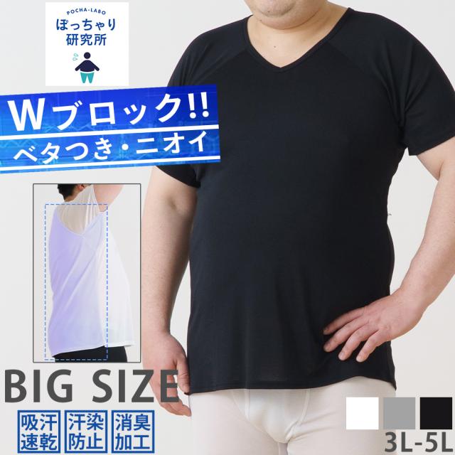 大きいサイズ ぽっちゃり 汗染み防止 半袖 Vネック シャツ 吸汗 速乾 消臭 メンズ 年間 肌着 下着 インナー 綿混 紳士 男性 L1231L-E