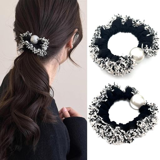 NATUNOFU ヘアゴム パール シュシュ 大人 髪ゴム 跡がつかない ヘアアクセサリー おしゃれ 跡がつかない 髪飾り パール 可愛い レディース 黒 ヘアアクセサリー 大人向け まとめ髪 ヘアゴム …
