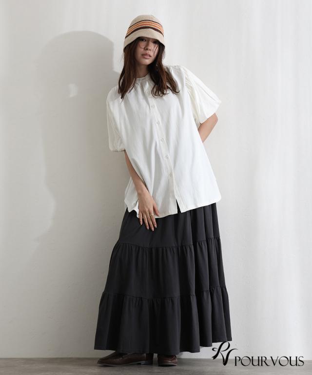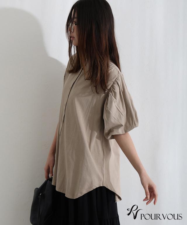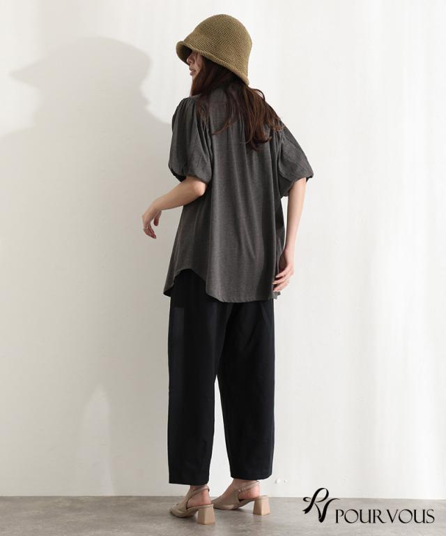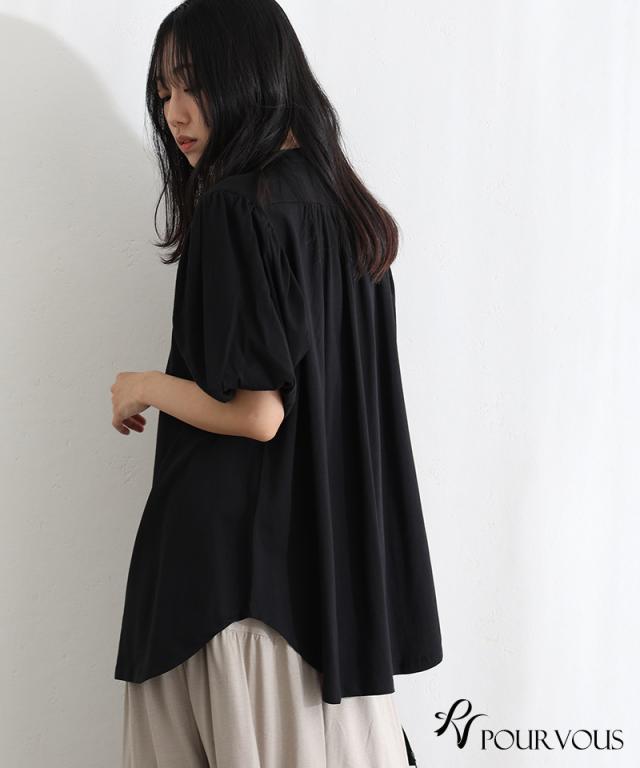 ブラウス風パフスリーブカットソー【465251626】20代・30代・40代・50代・トップス・レディース・カジュアル・半袖・長袖・七分・ノースリーブ・肩出し・Vネック・シンプル・薄手・厚手・無地・刺繍・花柄・可愛い・伸縮性・キレイめ・着やせ・重ね着風・新作・レース・上品・セットアップ・ビジュー・体型カバー・スタイルアップ・小さいサイズ・3Lや4L・即日発送・送料無料・オフィス・ワーク・オールシーズン・デイリー・普段着・オケージョン・セミフォーマル・婚活・顔合わせ・同窓会・お呼ばれ・食事会・謝恩会・親族・七五三・お宮参り・冠婚葬祭・弔事・女子会・デート・入学式・卒業式・入園式・ママ