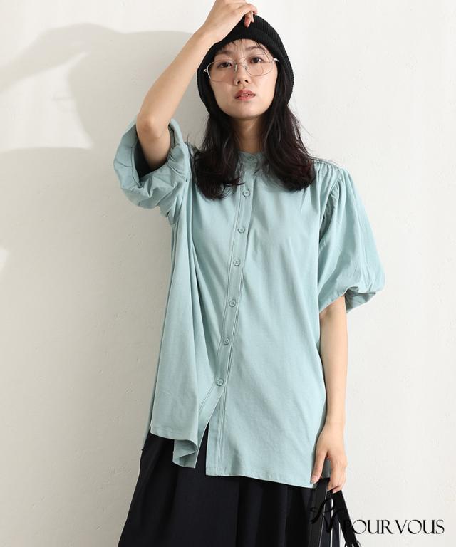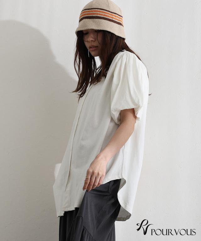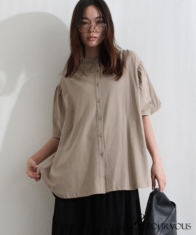 ブラウス風のデザインにパフスリーブを組み合わせたカットソーです。