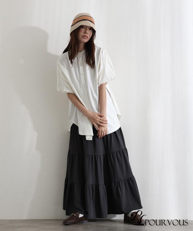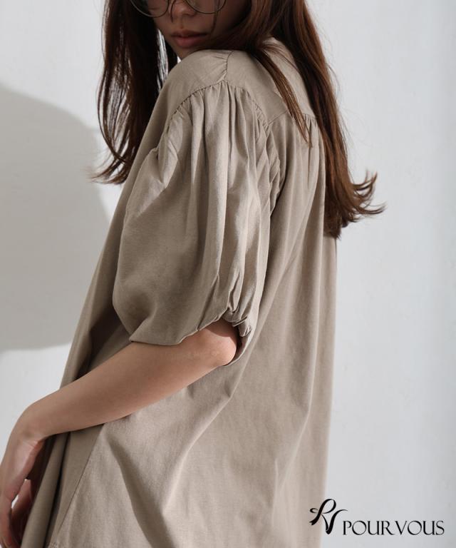 ふんわりとしたパフスリーブが気になる二の腕をキレイにカバー。