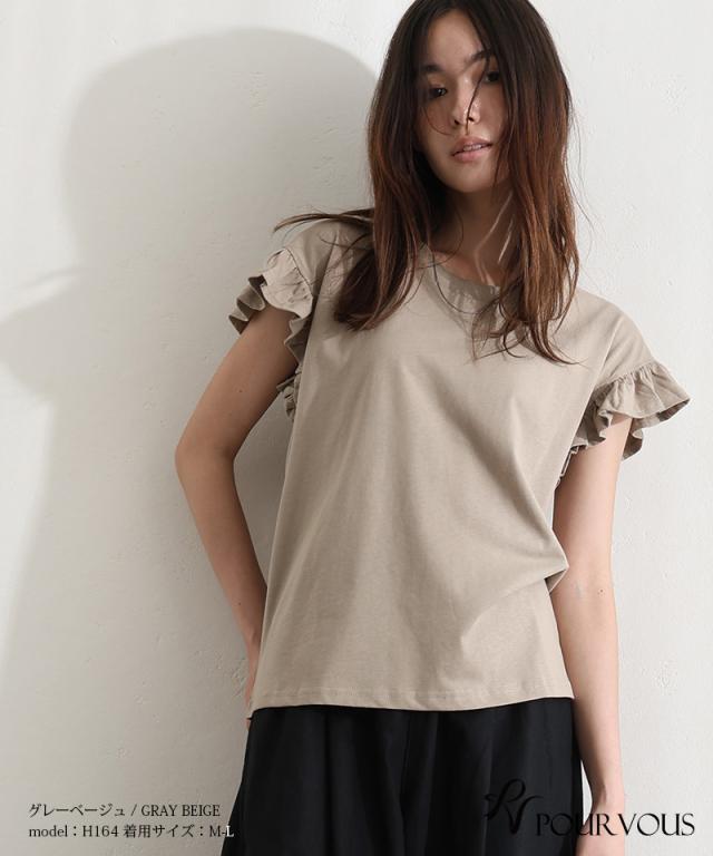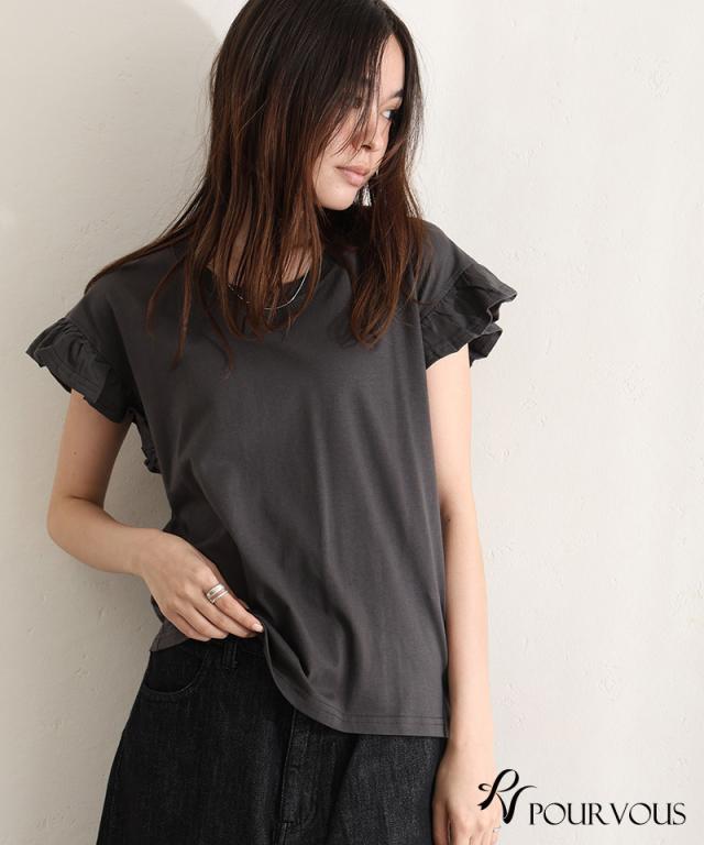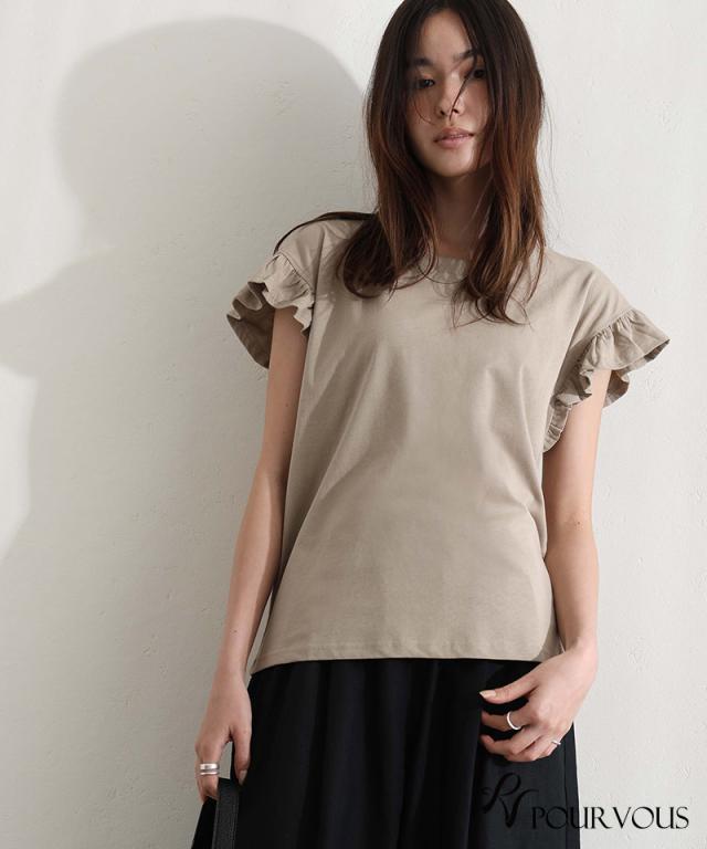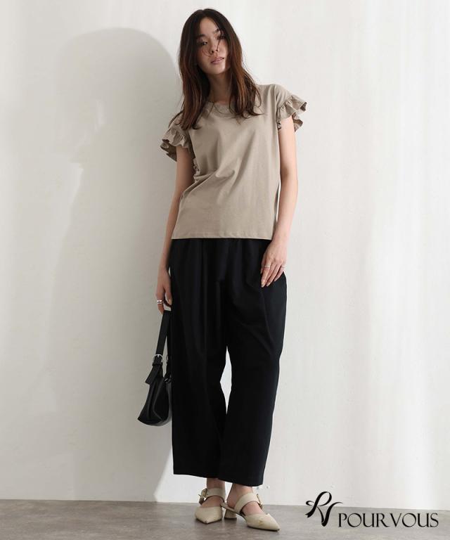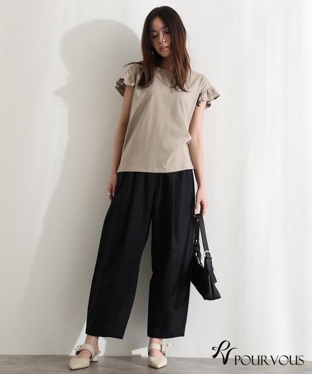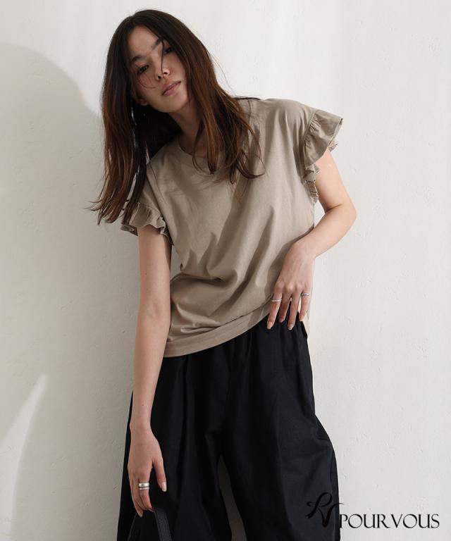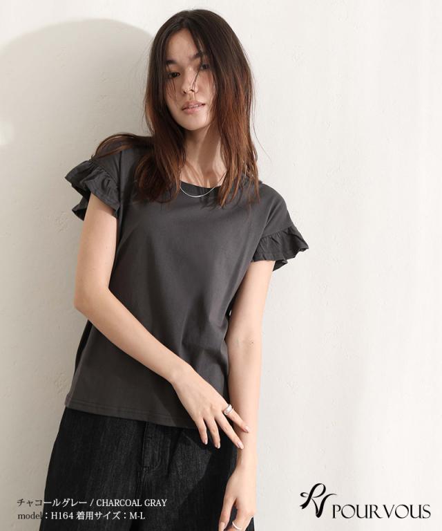 467251626 袖フレア ノースリーブ 通勤 お出かけ お出掛け着 普段着に チャコールグレー 天竺素材 シルエット グレーベージュ tシャツ 大人 春夏 デート ブラック ナチュラル 着回し 韓国