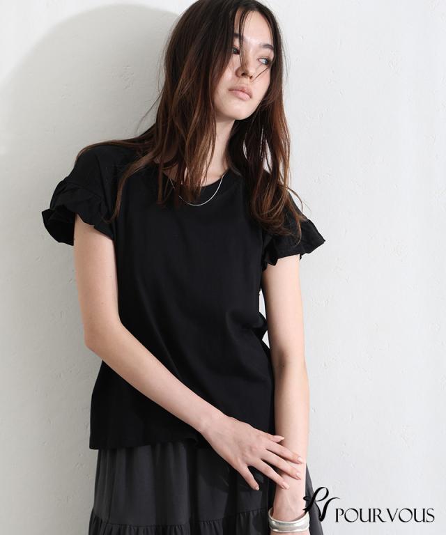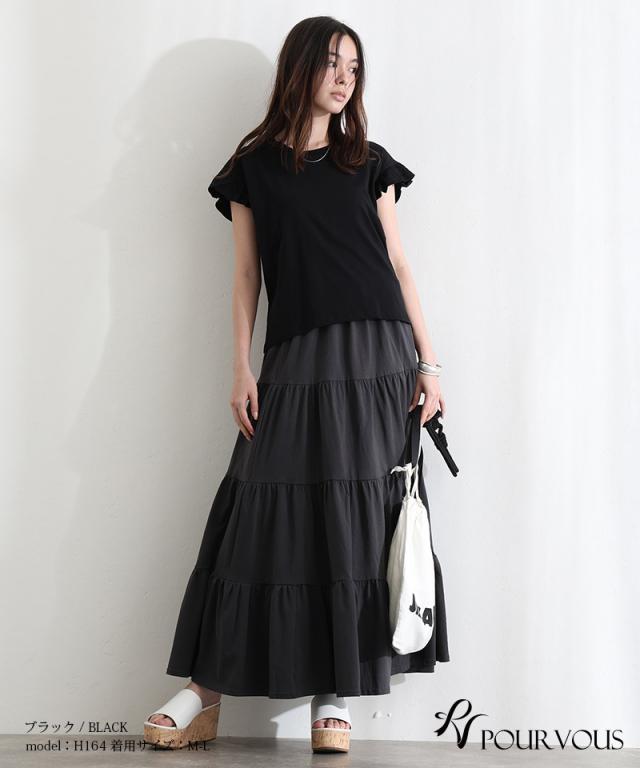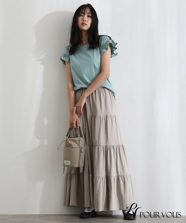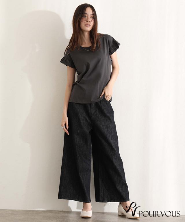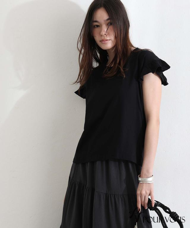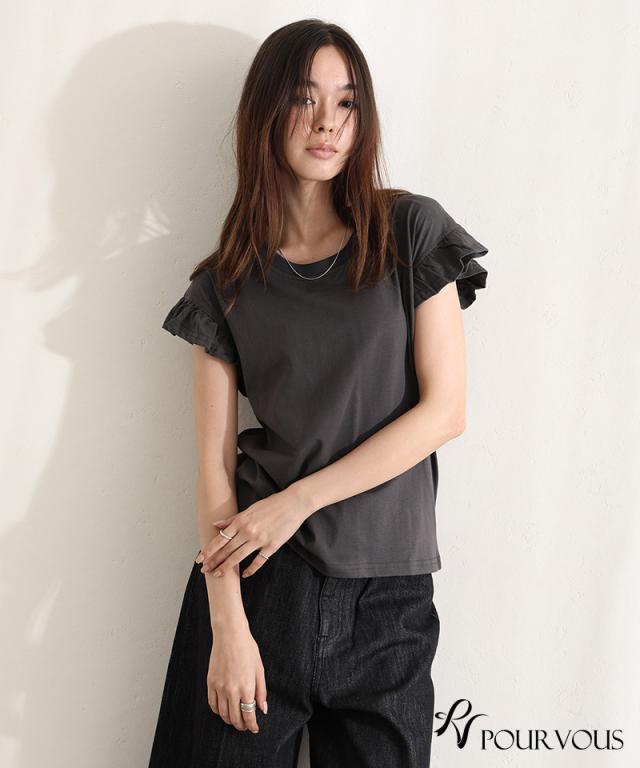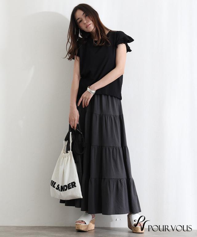 467251626 袖フレア ノースリーブ 通勤 お出かけ お出掛け着 普段着に チャコールグレー 天竺素材 シルエット グレーベージュ tシャツ 大人 春夏 デート ブラック ナチュラル 着回し 韓国