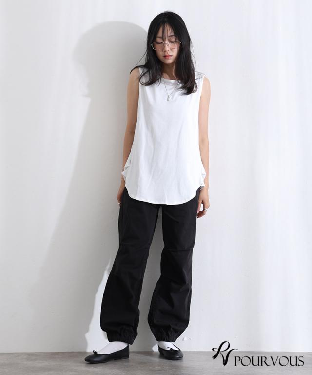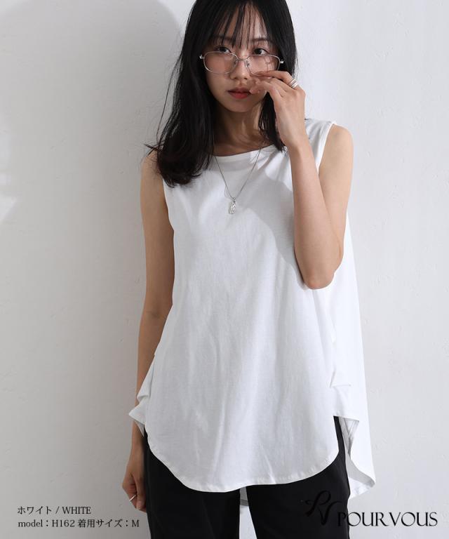 468251626 タック ノースリーブ 着回し 大きめ 大きい ビッグサイズ 綿100% 夏 サマー 春夏 普段着に デイリー ナチュラル 大人 20代 30代 40代 50代 黒 ブラック ホワイト 白 ベージュ かっこいい