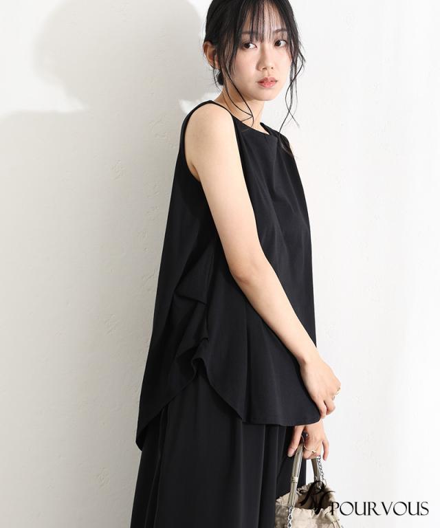 脇タックノースリーブトップス【468251626】20代・30代・40代・50代・トップス・レディース・カジュアル・半袖・長袖・七分・ノースリーブ・肩出し・Vネック・シンプル・薄手・厚手・無地・刺繍・花柄・可愛い・伸縮性・キレイめ・着やせ・重ね着風・新作・レース・上品・セットアップ・ビジュー・体型カバー・スタイルアップ・小さいサイズ・3Lや4L・即日発送・送料無料・オフィス・ワーク・オールシーズン・デイリー・普段着・オケージョン・セミフォーマル・婚活・顔合わせ・同窓会・お呼ばれ・食事会・謝恩会・親族・七五三・お宮参り・冠婚葬祭・弔事・女子会・デート・入学式・卒業式・入園式・ママ