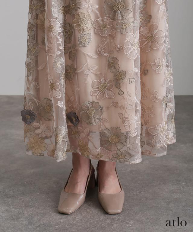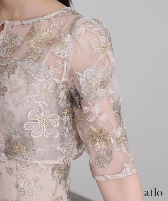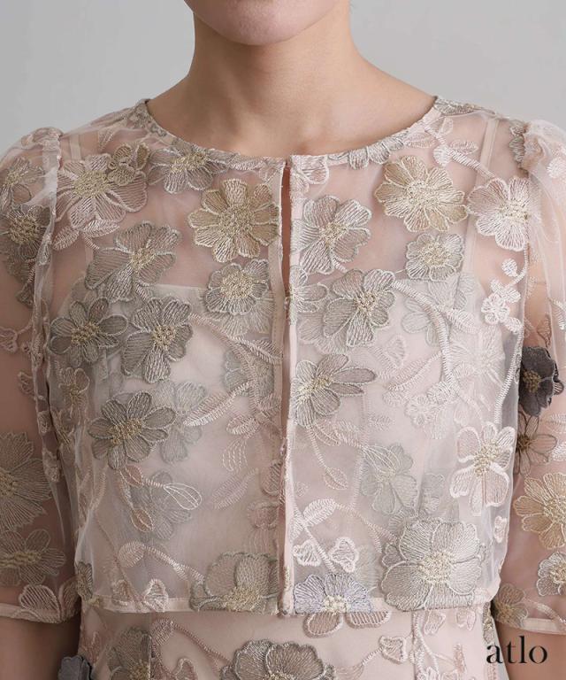 繊細なフラワー刺繍を贅沢にあしらった、品のある華やかさが魅力の一枚。