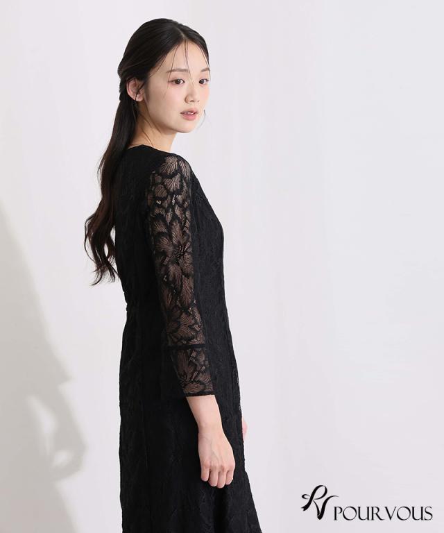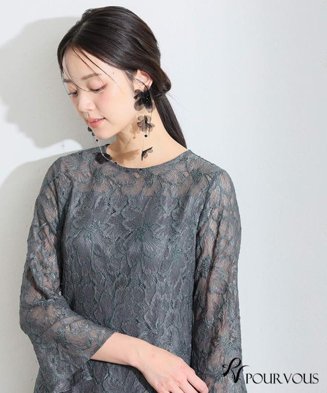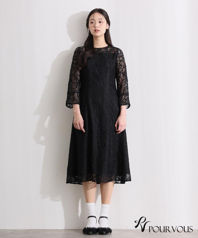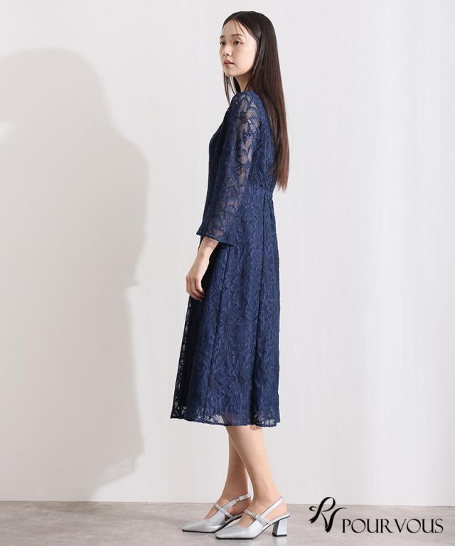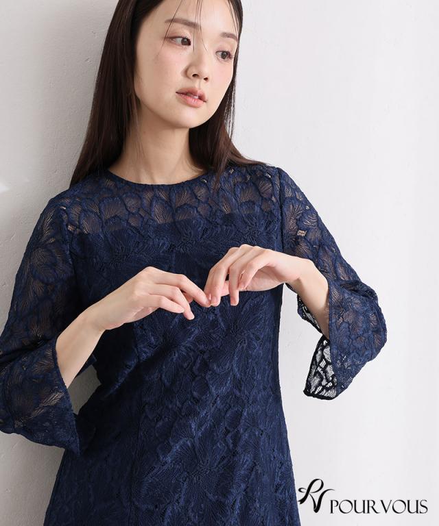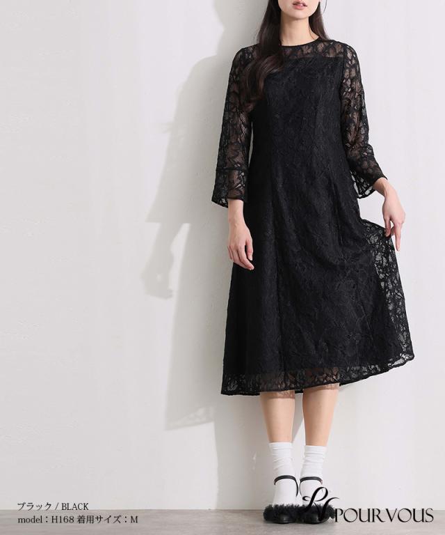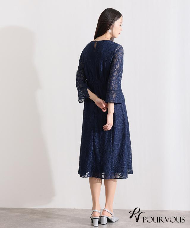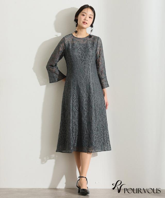 総レースベルスリーブフレアドレス【456251613】10代・20代・30代・40代・50代・ドレスワンピ・フォーマルワンピ・パンツドレス・服装・ワンピース・ドレスカジュアル・ブランド・七分袖・長袖・ロング・膝丈・薄手・厚手・無地・刺繍・脚長効果・伸縮性・キレイめ・着やせ・体型カバー・スタイルアップ・レース・リボン・ドレープ・小さいサイズ・3Lや4L・かっこいい・かわいい・即日発送・送料無料・結婚式・婚活・披露宴・顔合わせ・発表会・演奏会・二次会・同窓会・お呼ばれ・食事会・謝恩会・親族・七五三・お宮参り・冠婚葬祭・弔事・女子会・韓国・デート・入学式・卒業式・入園式・卒園式・ママ・ピアノ・マタニティー・セレモニー・セレブ・パーティー