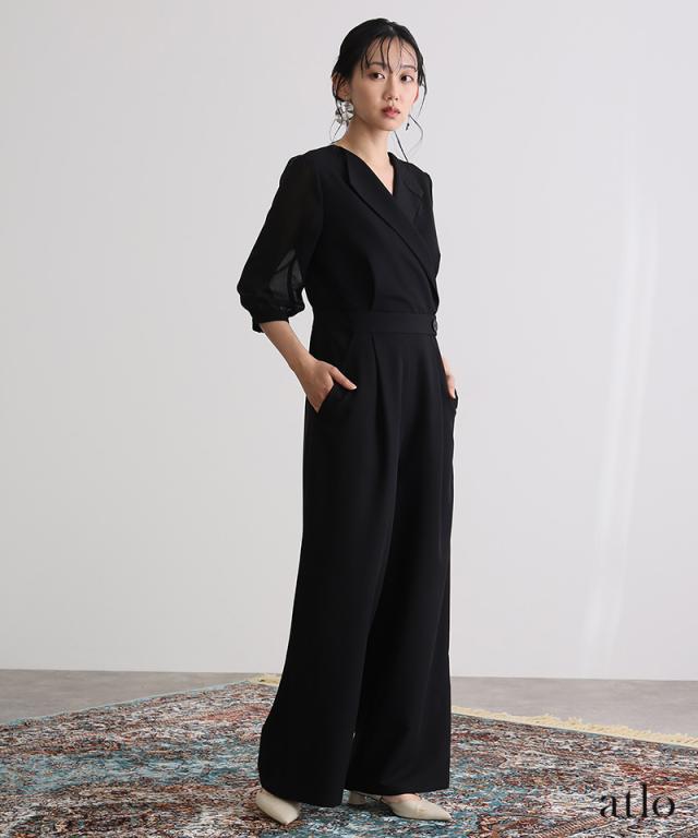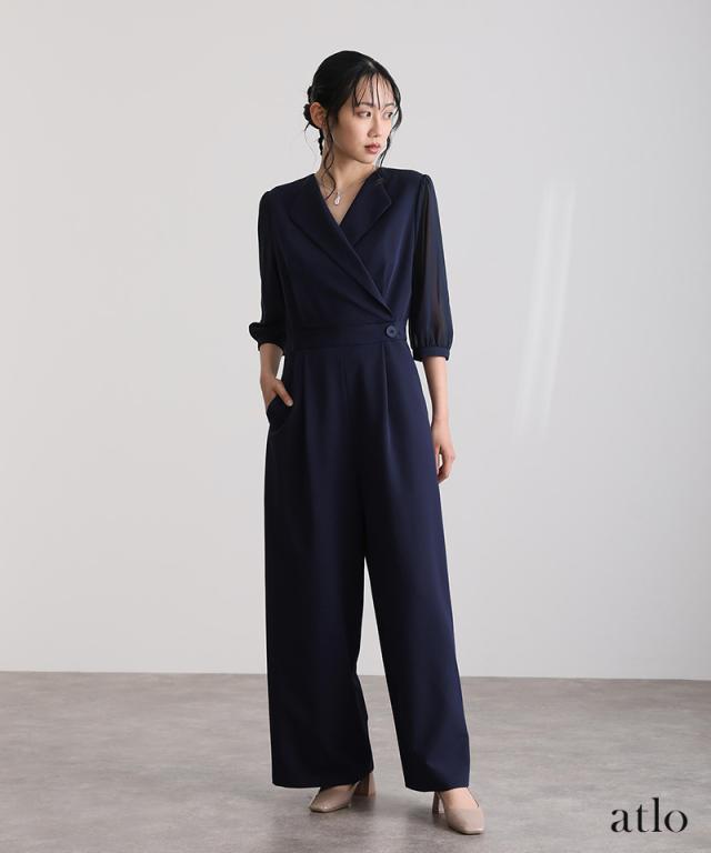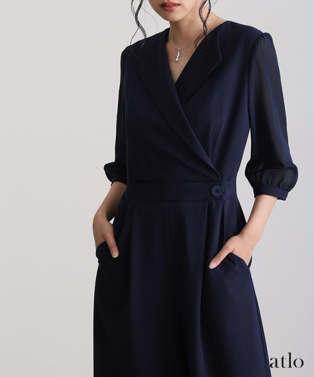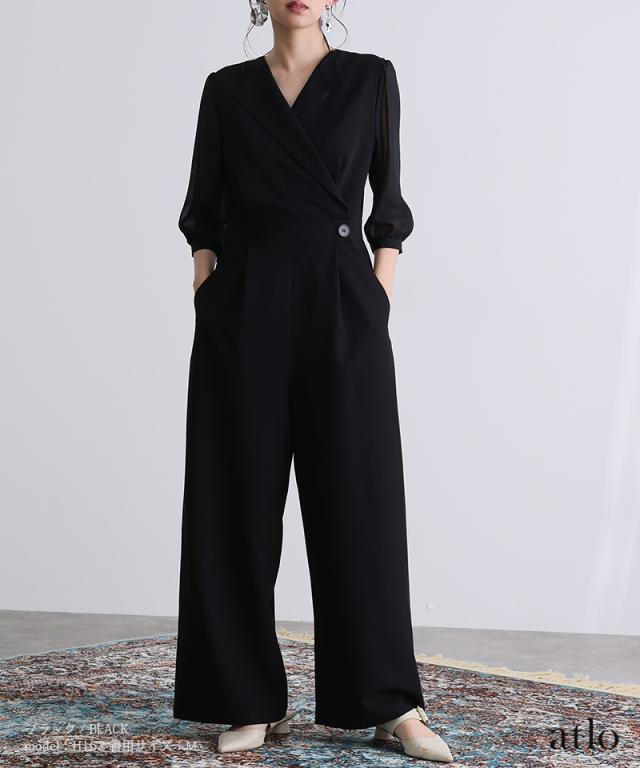 オープンカラーオールインワン【458251613】10代・20代・30代・40代・50代・ドレスワンピ・フォーマルワンピ・パンツドレス・服装・ワンピース・ドレスカジュアル・ブランド・七分袖・長袖・ロング・膝丈・薄手・厚手・無地・刺繍・脚長効果・伸縮性・キレイめ・着やせ・体型カバー・スタイルアップ・レース・リボン・ドレープ・小さいサイズ・3Lや4L・かっこいい・かわいい・即日発送・送料無料・結婚式・婚活・披露宴・顔合わせ・発表会・演奏会・二次会・同窓会・お呼ばれ・食事会・謝恩会・親族・七五三・お宮参り・冠婚葬祭・弔事・女子会・韓国・デート・入学式・卒業式・入園式・卒園式・ママ・ピアノ・マタニティー・セレモニー・セレブ・パーティー
