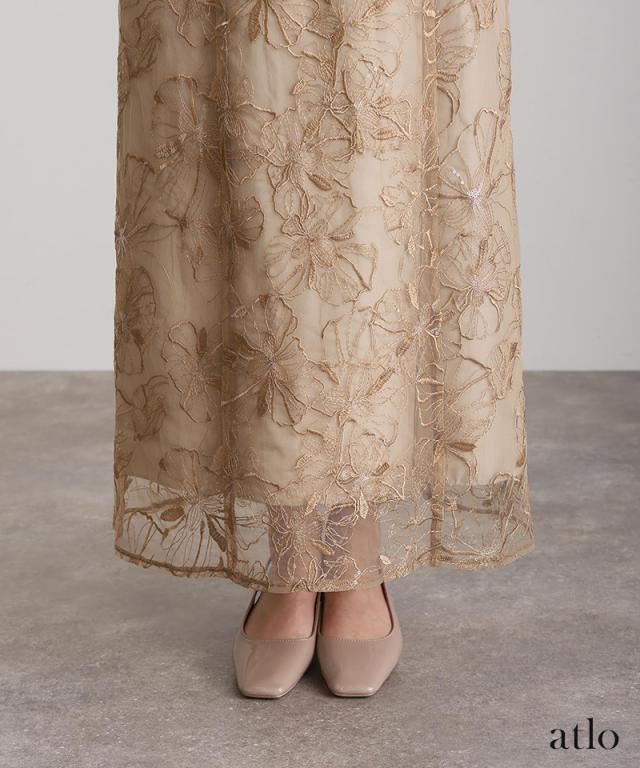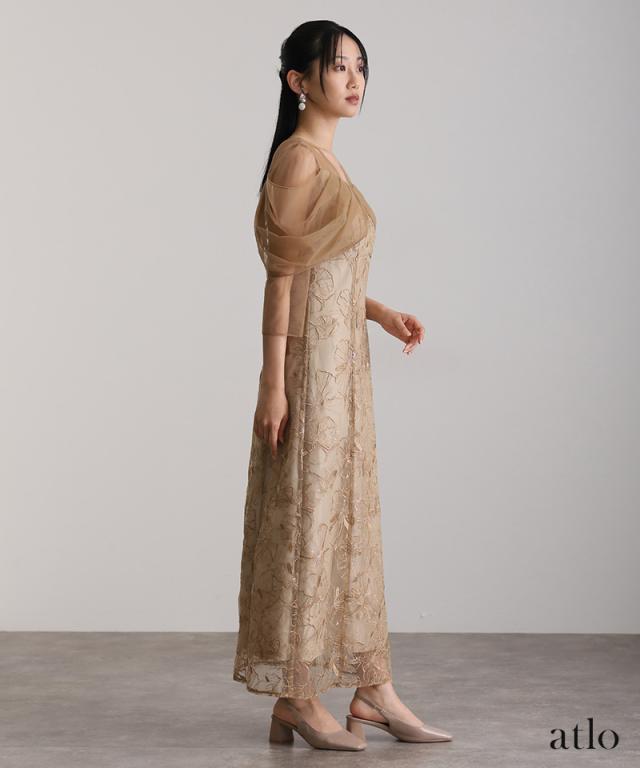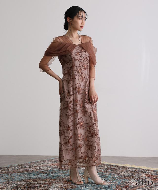 繊細なフラワーレースに煌めくスパンコールが散りばめられた、主役級の一着。