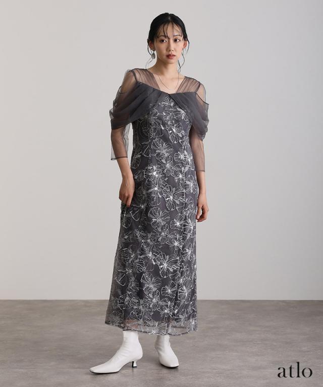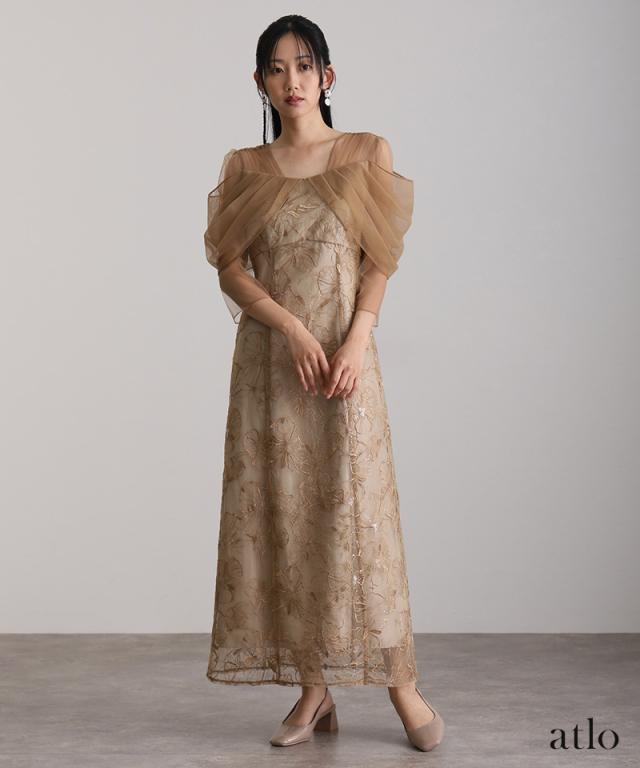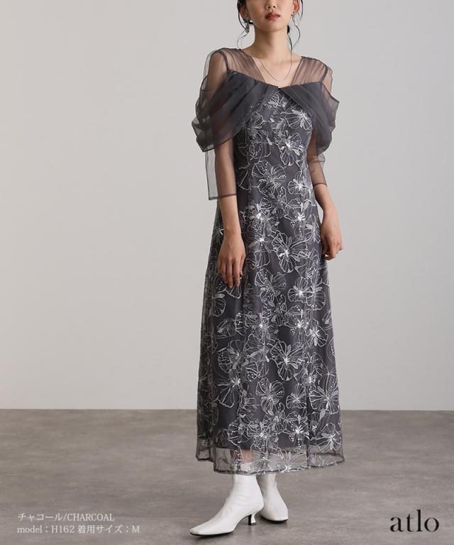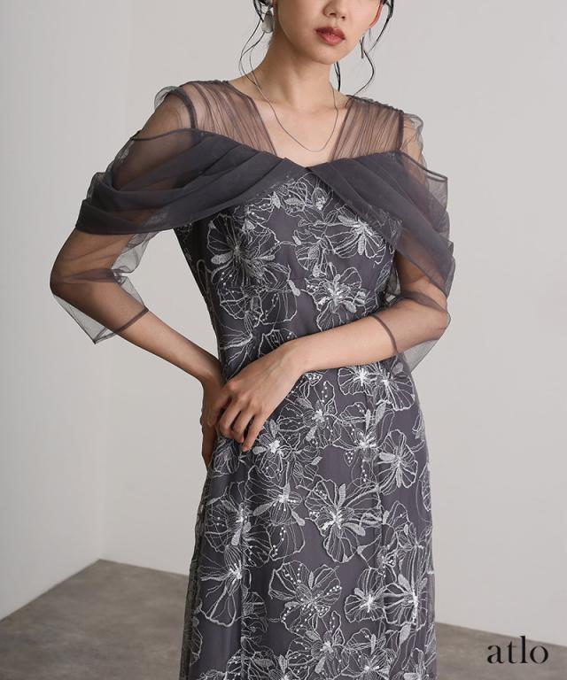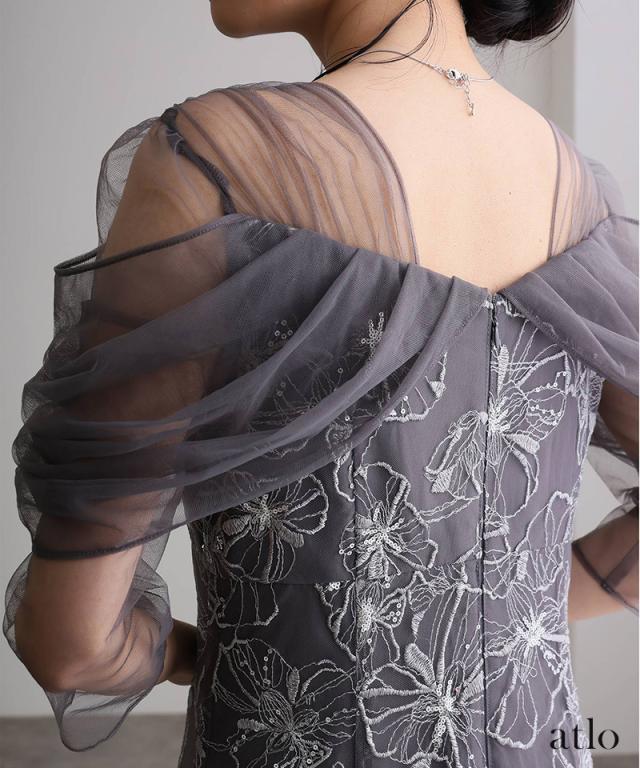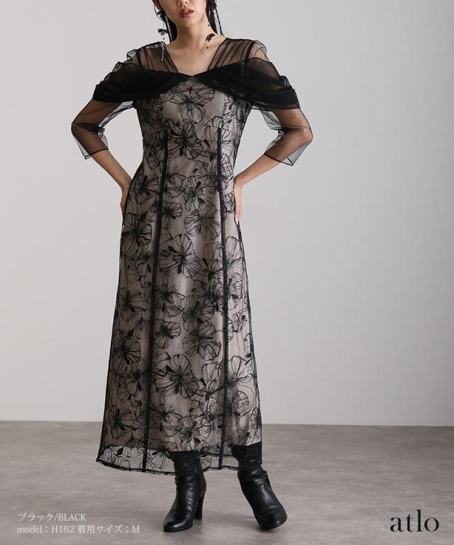 オフショルダースパンコール刺繍レースドレス【412251578】10代・20代・30代・40代・50代・ドレスワンピ・フォーマルワンピ・パンツドレス・服装・ワンピース・ドレスカジュアル・ブランド・七分袖・長袖・ロング・膝丈・薄手・厚手・無地・刺繍・脚長効果・伸縮性・キレイめ・着やせ・体型カバー・スタイルアップ・レース・リボン・ドレープ・小さいサイズ・3Lや4L・かっこいい・かわいい・即日発送・送料無料・結婚式・婚活・披露宴・顔合わせ・発表会・演奏会・二次会・同窓会・お呼ばれ・食事会・謝恩会・親族・七五三・お宮参り・冠婚葬祭・弔事・女子会・韓国・デート・入学式・卒業式・入園式・卒園式・ママ・ピアノ・マタニティー・セレモニー・セレブ・パーティー