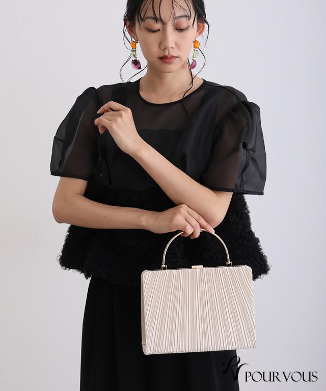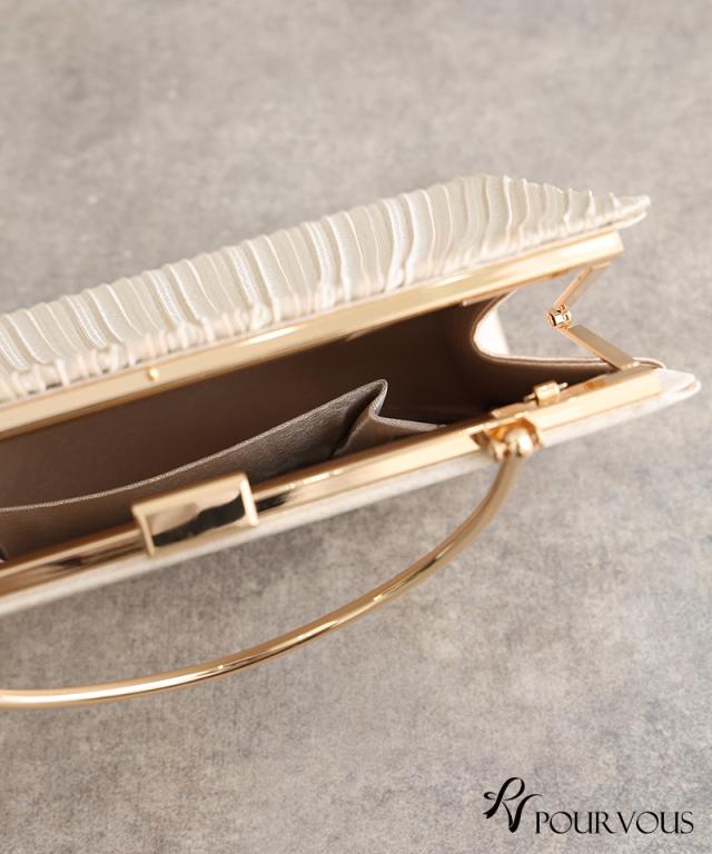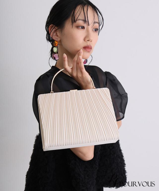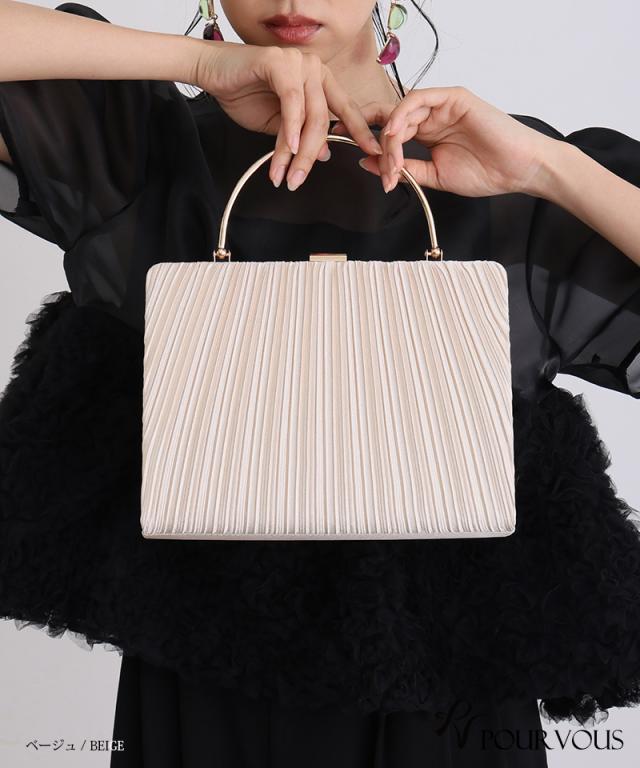 サテンプリーツワンハンドルバッグ【420251522】20代・30代・40代・50代・パーティーバッグ・マグネット・フラワー・コサージュ・ストラップ・フォーマル・シンプル・サブバック付き・大容量・結婚式・二次会・同窓会・お呼ばれ・謝恩会・お宮参り・女子会・デート・入学式・卒業式・パーティー・冠婚葬祭