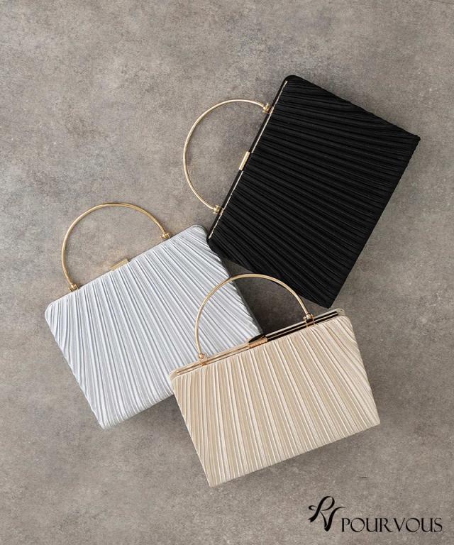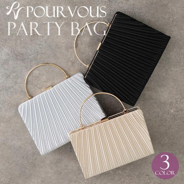420251522 パーティバッグ ハンドバッグ ハンドルバッグ パーティードレス レディースバッグ プリーツ サテン フォーマル 結婚式 成人式 春 夏 服装 お呼ばれ 大人 上品 ミセス 二次会 ブラック