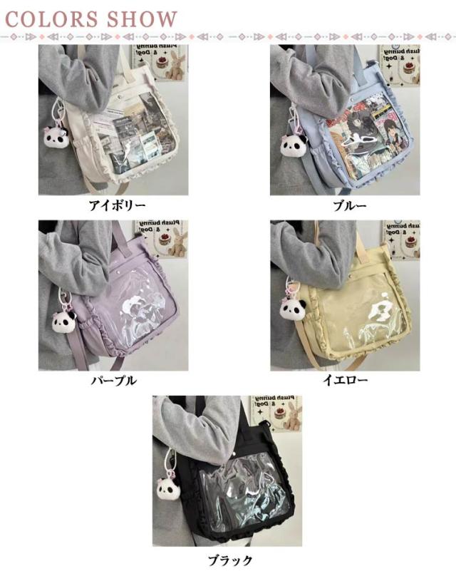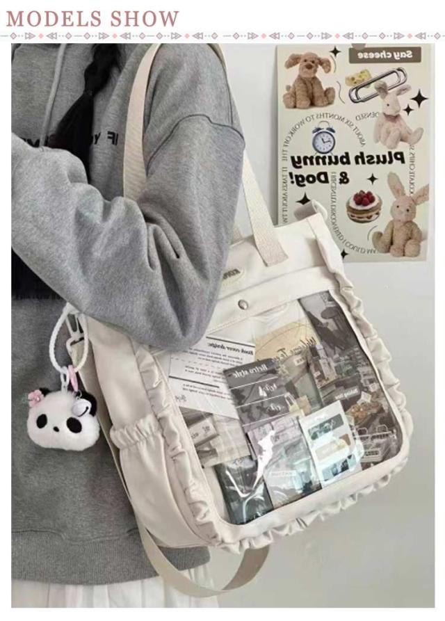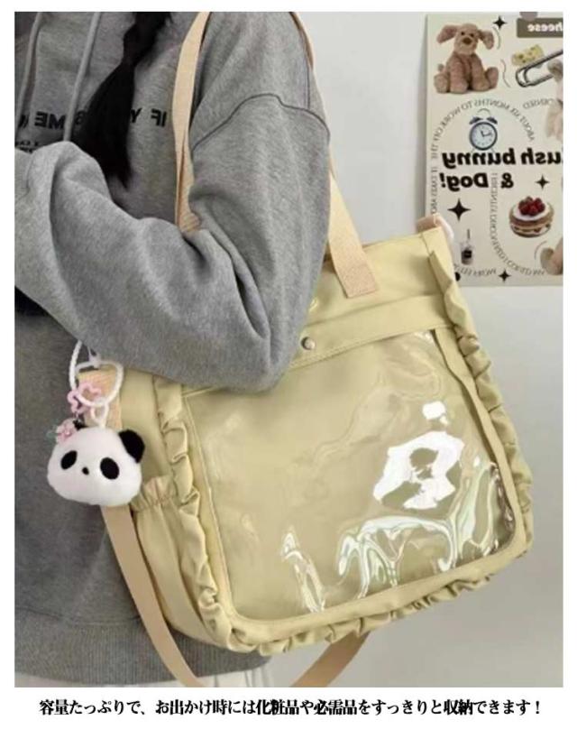 | バッグの前面の透明ポケットで見せたいアイテムで自分の好みにアレンジできるトートバッグです 正面が完全に透明なデザインで、お気に入りのぬいぐるみや小さなおもちゃを持ち歩くとき、その可愛さを存分にアピールできます! どこに行っても、愛らしいコンパニオンたちを外に連れ出し、楽しい冒険の旅を共にしましょう。 容量たっぷりで、お出かけ時には化粧品や必需品をすっきりと収納できます! イベント参加時や旅行時に、大切なアイテムを手軽に持ち運び、快適に過ごすことができます。 | |