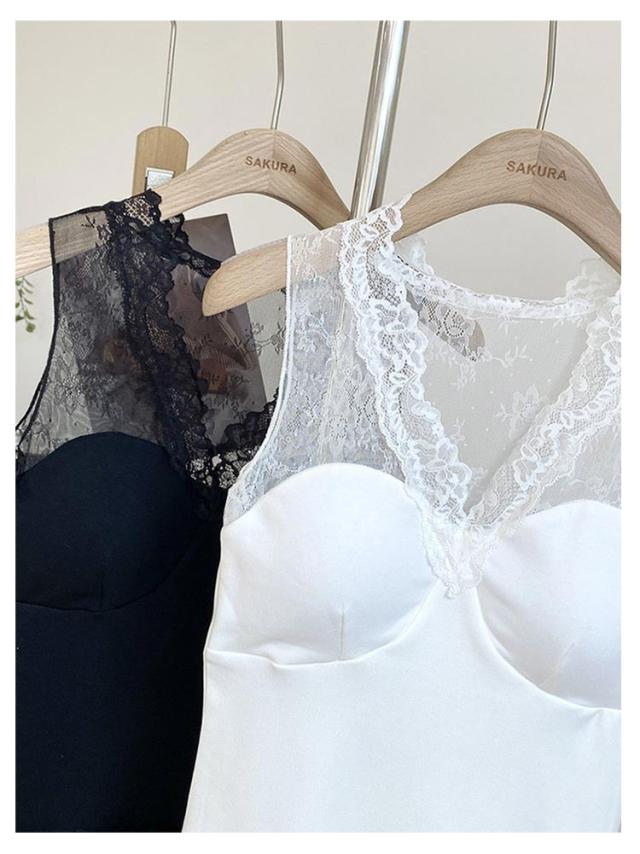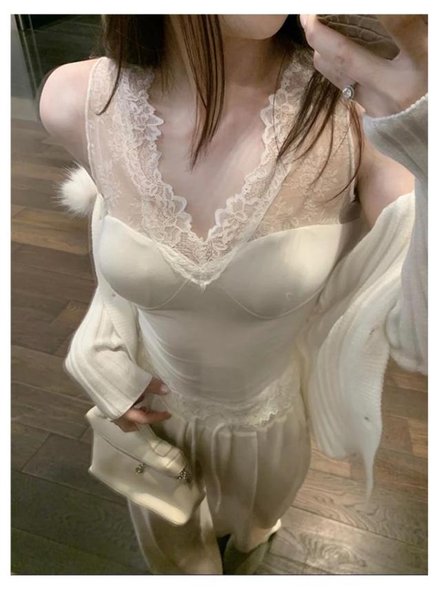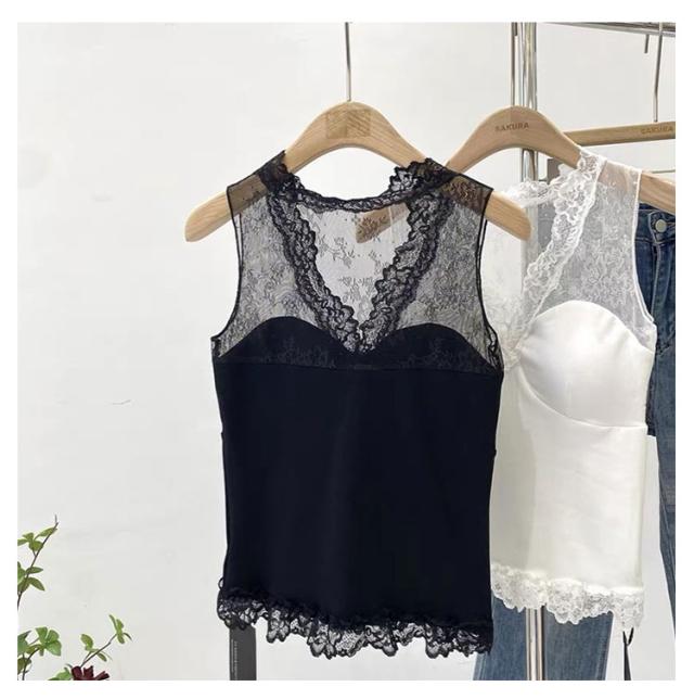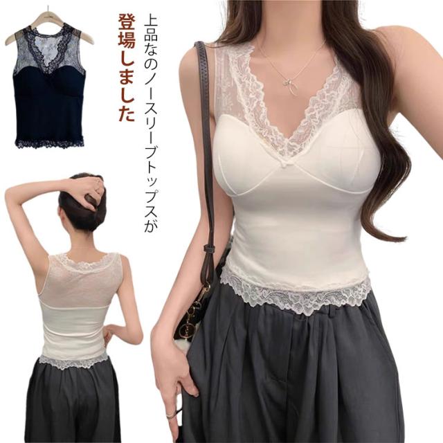 ノースリーブ レース タンクトップ Vネック キャミソール インナー セクシー キャミソール 大人 女性用 コーデ 春夏秋 カジュアル 上品 シンプル キャミ シャツ ブラック ホワイト 清楚
