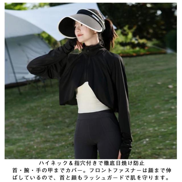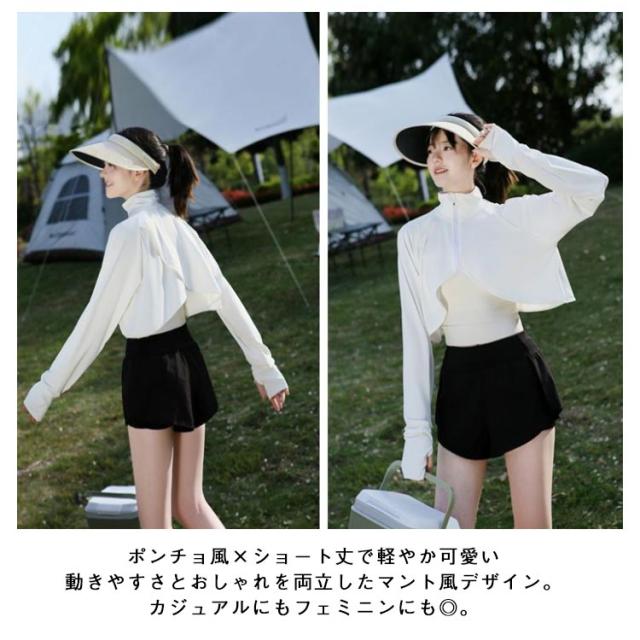 ハイネック ショート丈 ボレロ 接触冷感 マント風 ポンチョ ラッシュガード レディース 長袖 軽量 ボレロ カーディガン UVカット 日焼け対策 指穴付き アームカバー パーカー風 ゆったり 体型カバー お洒落 夏用