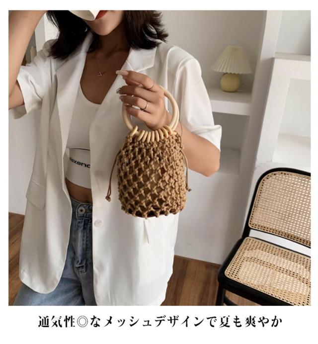小さめ ハンドバッグ レディース かごバッグ 可愛い 透かし編み 巾着袋付き メッシュ かごバッグ インナーポーチ シンプル 大人 手提げ 浴衣コーデ 花火大会 プレゼント