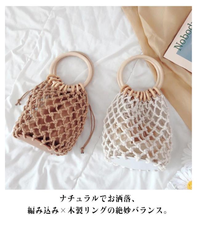 | 【ミニネットバッグ】 ナチュラルでお洒落、編み込み×木製リングの絶妙バランス。 ちょっとしたお出かけにぴったりなミニサイズバッグ登場。 手編みの温もり×木製リングでトレンド感アップ 通気性◎なメッシュデザインで夏も爽やか ミニ財布・リップなど小物の持ち歩きに最適 コンパクトでも存在感抜群!シンプルコーデのアクセントに | |