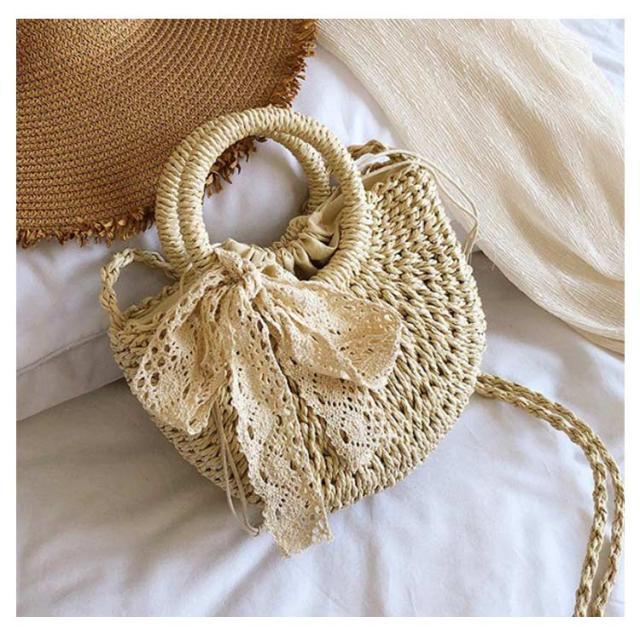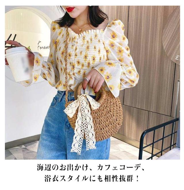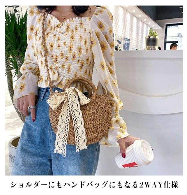 巾着式 2WAY かごバッグ かごバッグ レディースバッグ サマーバッグ シンプル 斜めがけ ハンドバッグ 可愛い おしゃれ ナチュラル 旅行 リゾート