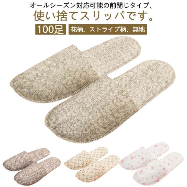 スリッパ ホテルスリッパ 前閉じ 花柄 不織布 綿麻風スリッパ 100足 綿麻調 使い捨てスリッパ 室内履き 病院 ホテル 旅館 個包装 入院 使い捨てスリッパ 滑り止め 機内 エステ用品 高級仕様 業務用スリッパ 自宅 来客 車内 サロン マッサージ店 おしゃれ かわいい フラワー