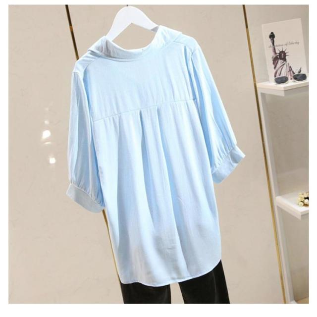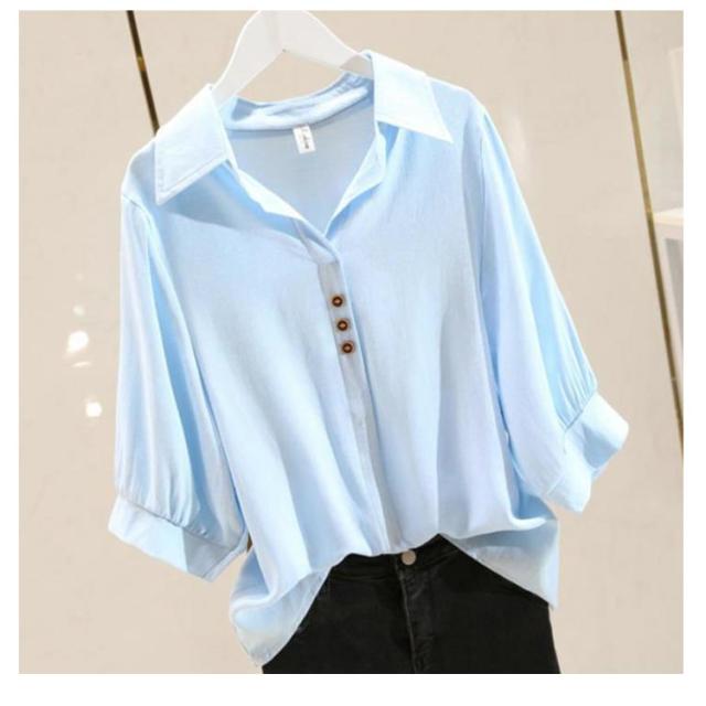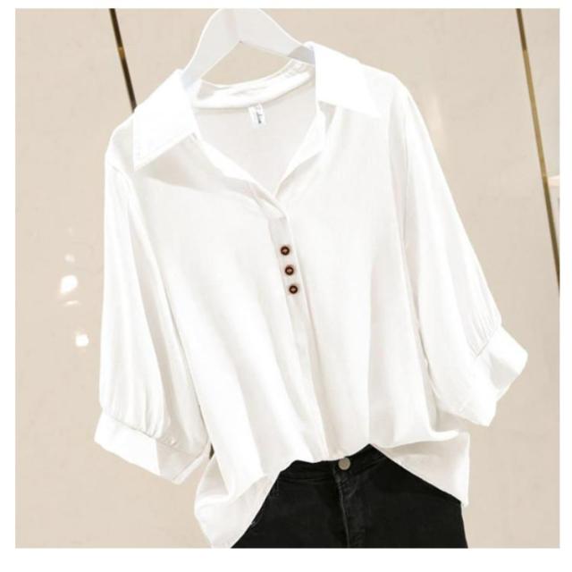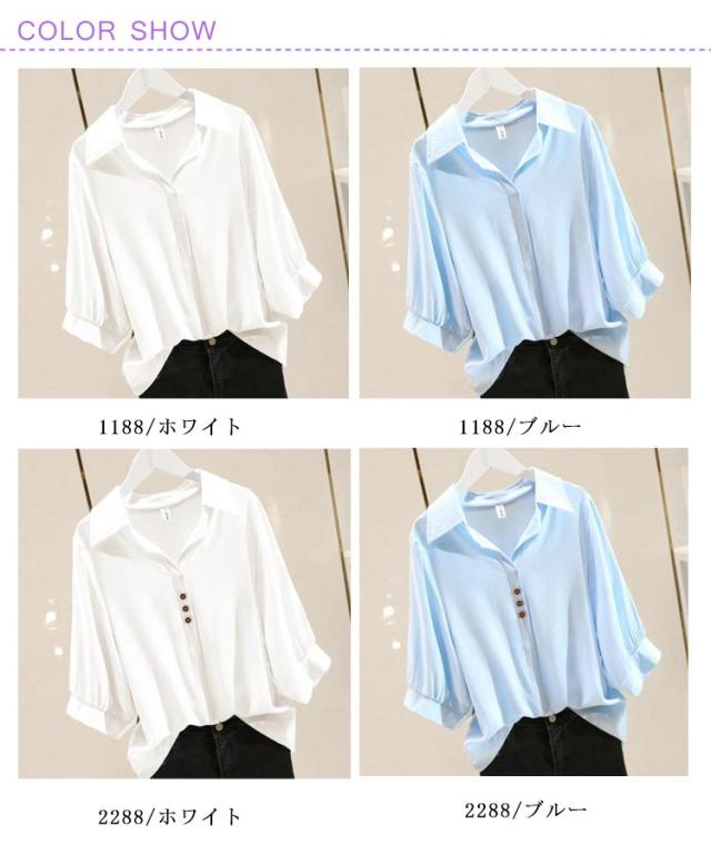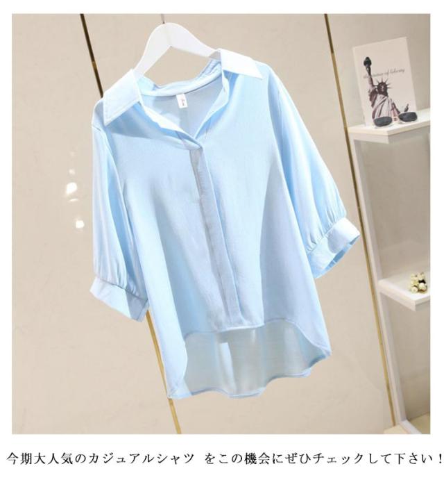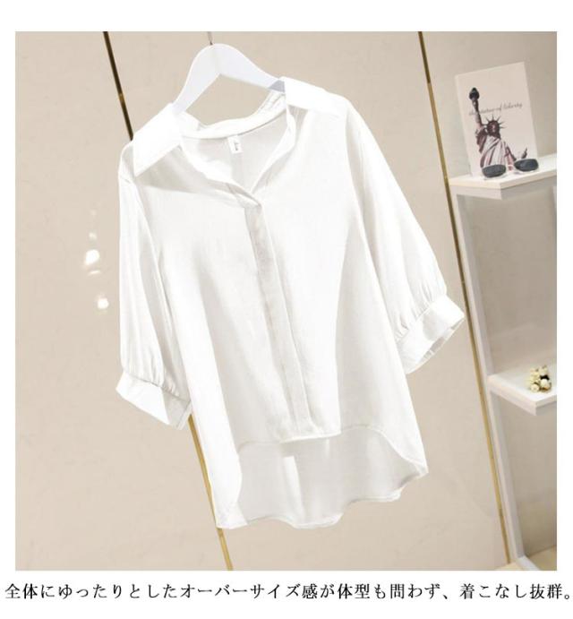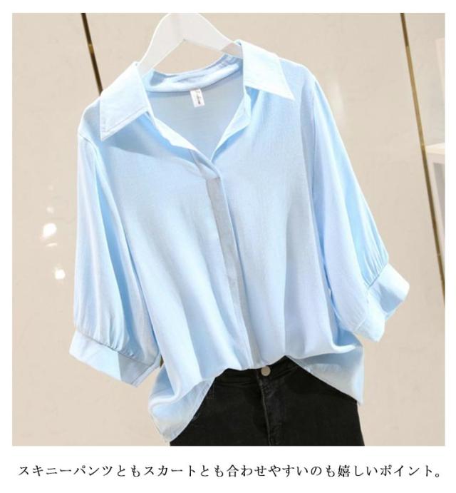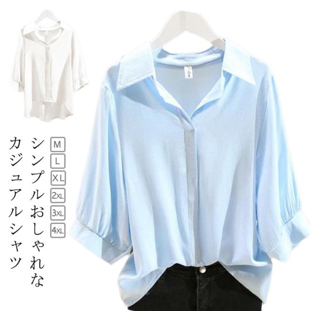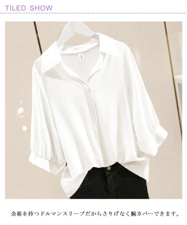 無地 ドルマンスリーブ レディース 春夏 シャツ カジュアルシャツ 春夏 Vネック 大きいサイズ 7分袖 カジュアル 涼しい ブラウス シャツ 大人 女性 かわいい 薄手 シンプル おしゃれ 可愛い トップス きれいめ 通勤