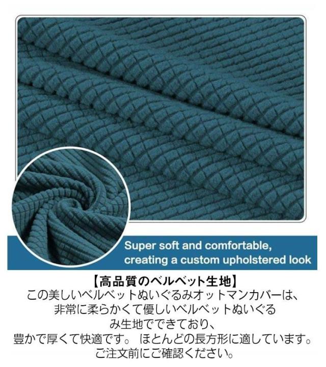 | 【高品質のベルベット生地】この美しいベルベットぬいぐるみオットマンカバーは、非常に柔らかくて優しいベルベットぬいぐるみ生地でできており、豊かで厚くて快適です。 ほとんどの長方形に適しています。 ご注文前にご確認ください。 【完璧なフィット感】伸縮性の高い生地は、正方形、長方形、5面の収納オットマンにぴったりです。 伸縮性のあるボトムバンドは、プロテクターがオットマンの底にくっつくことを可能にします。 【完全な保護】オットマンの底にある超伸縮性のバンドは、オールラウンドなカバレッジと滑り止めを提供し、毎日の汚れ、擦り傷、ほこり、汚れ、こぼれ、いたずらな子供、猫ひっかき病、犬の咬傷、毛皮からオットマンを保護しますあなたはあなたの家にエネルギッシュなペットを飼っています また、その外観を維持するのに役立ちます。フットスツールに強くお勧めします。あなたに最高の快適さをもたらします。 | |