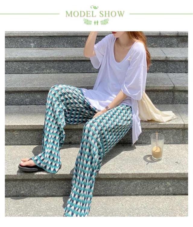 | 接触冷感ワイドパンツ。 チェック柄がオシャレでコーディネート自在 速乾&涼感のあるサラてろ素材で汗ばむ日でも快適。 ゆったりストレートシルエットで足長効果 伸縮性抜群のウエストゴムでお腹周りも楽ちん。 広がり過ぎないストレートシルエットが大人な雰囲気を演出してくれるので、ラフすぎないスタイリングにも! | |