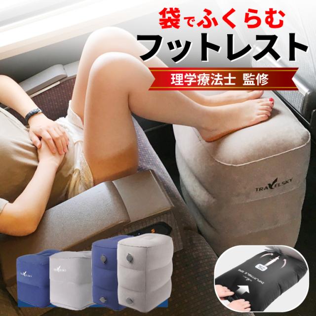 フットレスト 飛行機 快適グッズ 車 新幹線 高さ調整 持ち運び エアー クッション 高速バス 車中泊 防災 オットマン コンパクト 電車 旅行 理学療法士監修