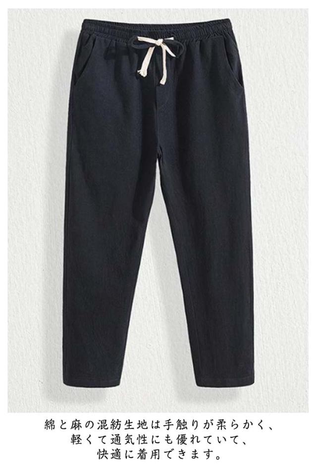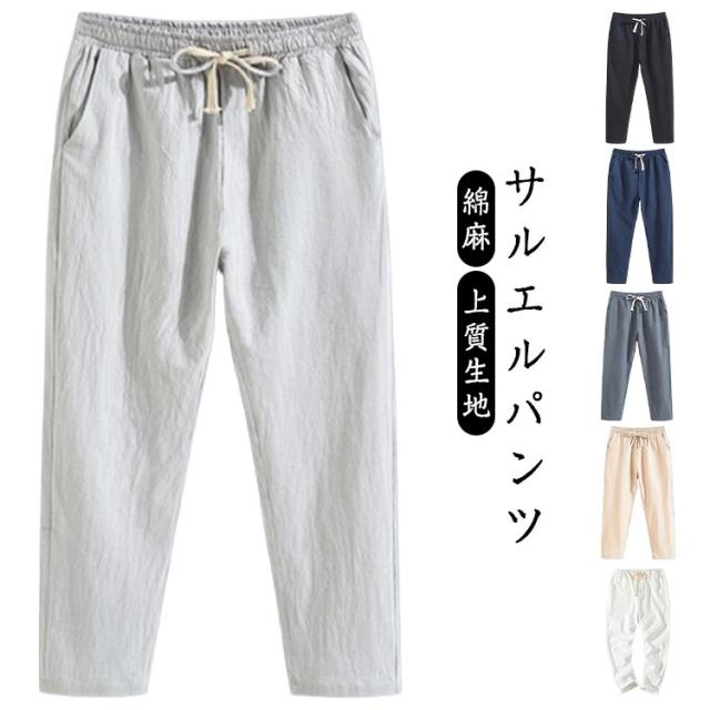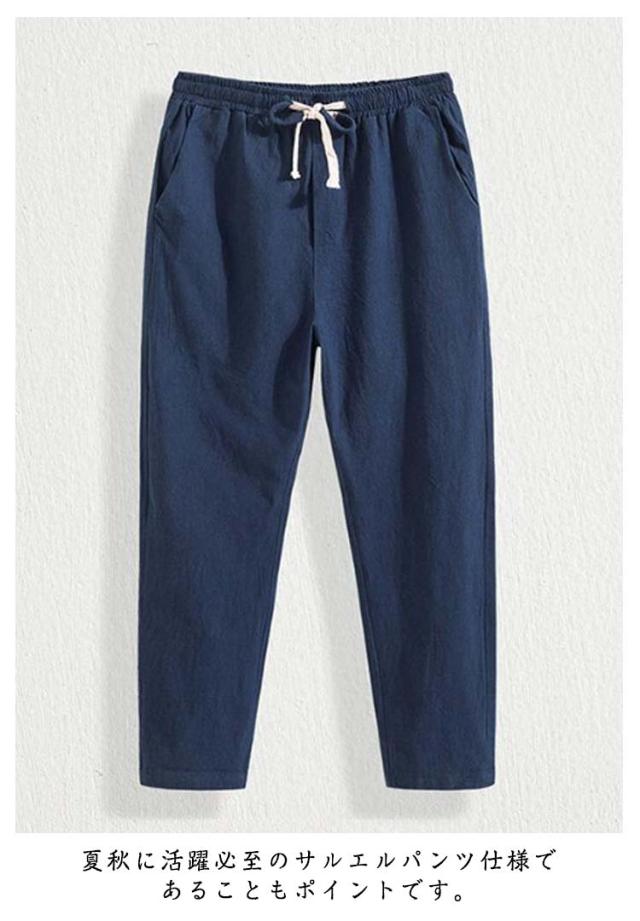 涼しい サルエルパンツ ズボン 9分丈 ずぼん 無地 麻パンツ お洒落 アンクル丈 ワイドテーパードパンツ 夏用 サルエルパンツ カジュアル イージーぱんつ メンズ 袴パンツ 大きいサイズ ロングパンツ 春 夏 ゆったりパンツ