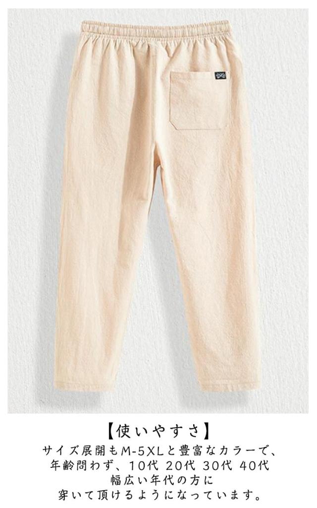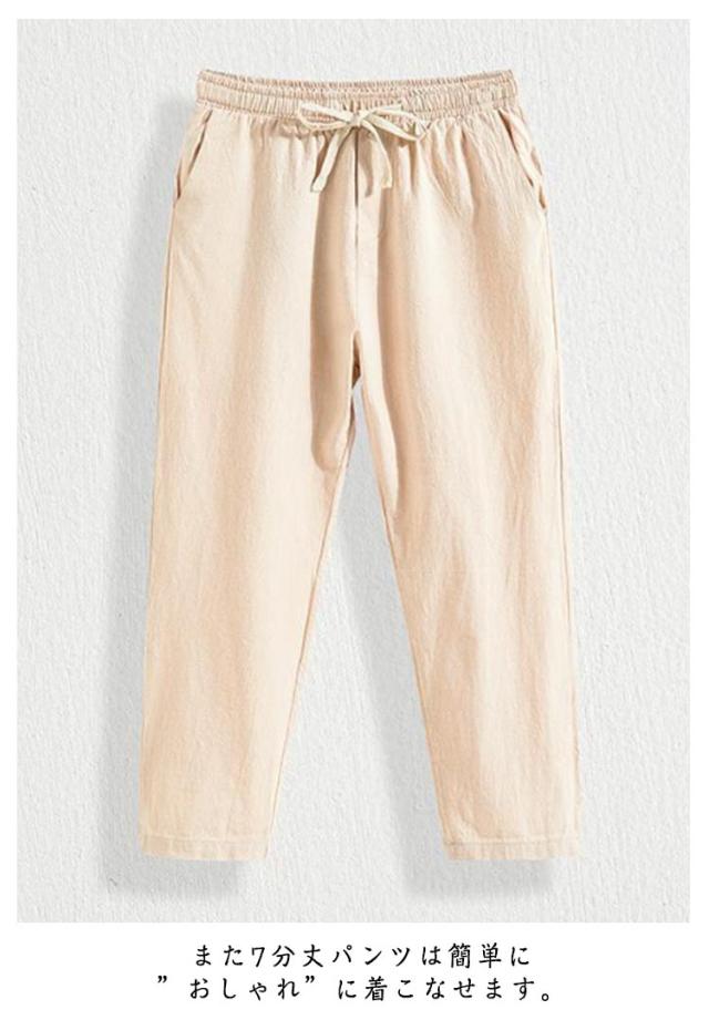 | 【上質生地】 軽くて上質な綿と麻の混紡生地で仕上げて、暑い夏でも快適に着用できるパンツを目指しています。 綿と麻の混紡生地は手触りが柔らかく、軽くて通気性にも優れていて、快適に着用できます。 【細部への飽くなく】 ウエストの部分はゴムが入っており伸縮性のあるウエストを採用しています。 ポケットはサイドには付いておりますがバックには付いておりません、バック部分に物を入れない方も多いのでバック部分のポケットはない仕様となっております。 また7分丈パンツは簡単に”おしゃれ”に着こなせます。 【使いやすさ】 夏秋に活躍必至のサルエルパンツ仕様であることもポイントです。 サイズ展開もM-5XLと豊富なカラーで、年齢問わず、10代 20代 30代 40代 幅広い年代の方に穿いて頂けるようになっています。 【適用場合】 通学、スポーツ、遊園地、BBQ、デート、お出かけ、ガーデニング、旅行などの日常着としてはもちろん、ハイキング、遠足、キャンプ、ダンスなどのスポーツやアウトドアにも、バイト、通勤などのビジネスな場合にも適応、様々なシーンでご使用できるデイリーパンツ。 | |
