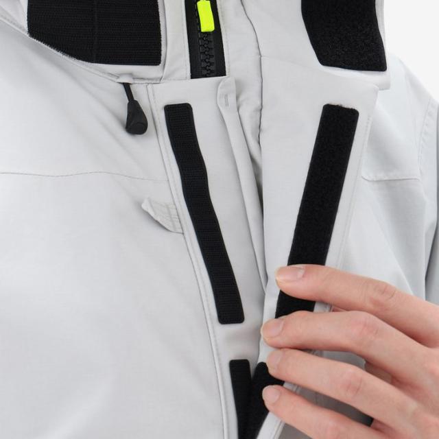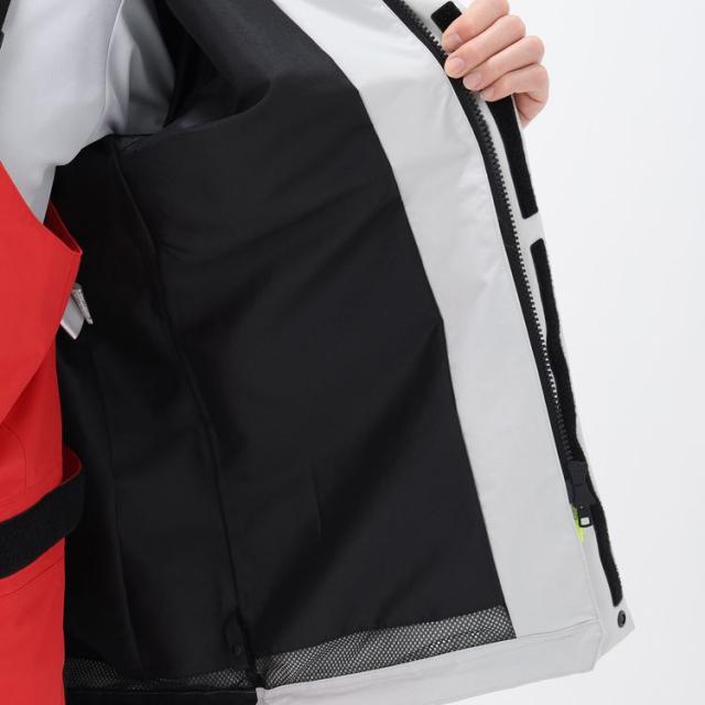 | 特徴 | 防水コーティングは、ポリウレタンコーティングを使用しています。 セーリングシーンで擦れやすい裾は、コーデュラで補強しました。 フロントフラップは、上部分離型のデザインを採用。襟部分の前立てが高く、太めの設計になっており、保温性や水の入りにくさが向上。首まわりのフィット感を調節しやすいのも魅力です。袖口はダブルカフで気密性をもたせ、水の浸入を軽減しています。 フラッシュイエローやフラッシュオレンジを配色したフードや、SOLAS条約(海上人命安全条約)に準じたリフレクトサイトのワッペンを設けることで、海上での視認性を高めています。 特徴的な意匠として、”ボトルバック”デザインをバックスタイルに採用。船が前進していく時に海面に現れる航跡と、大航海時代に船乗り(航海士)が飲んでいたシェリー酒のボトルをイメージしたデザインです。 |