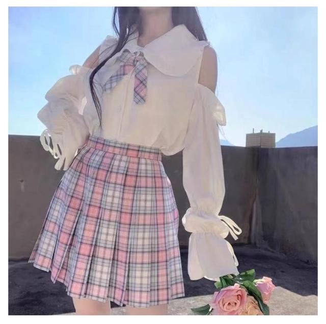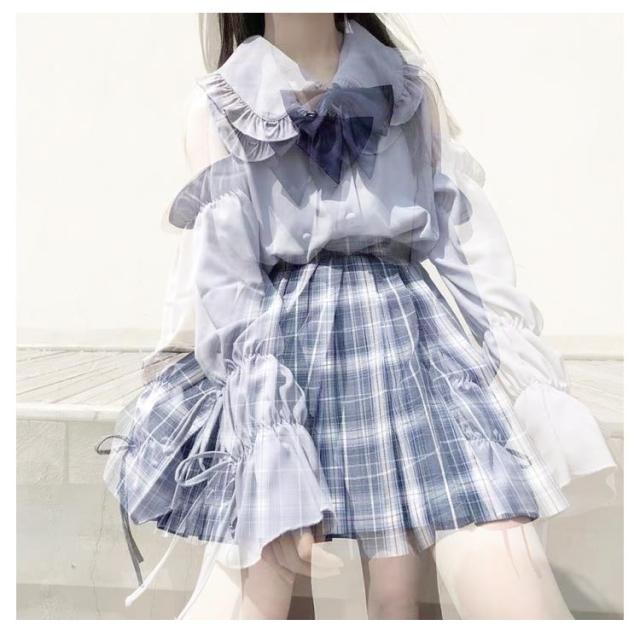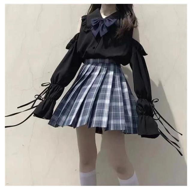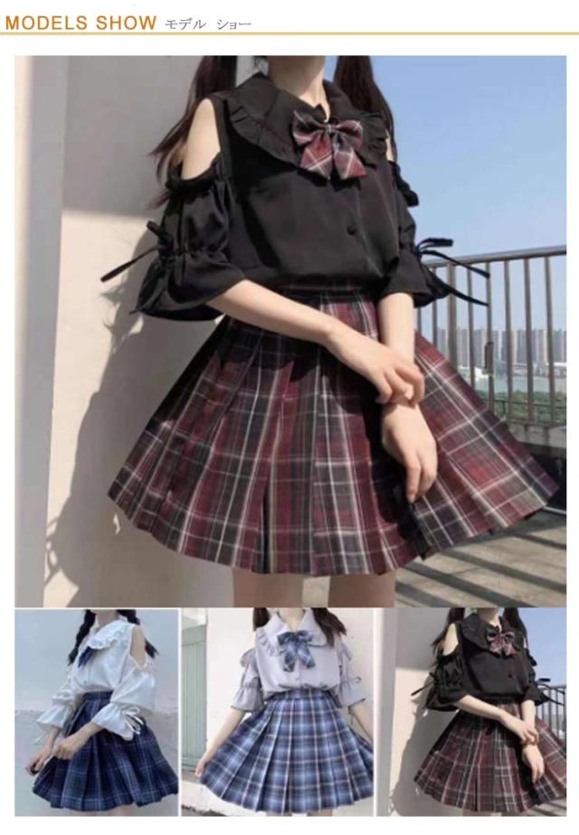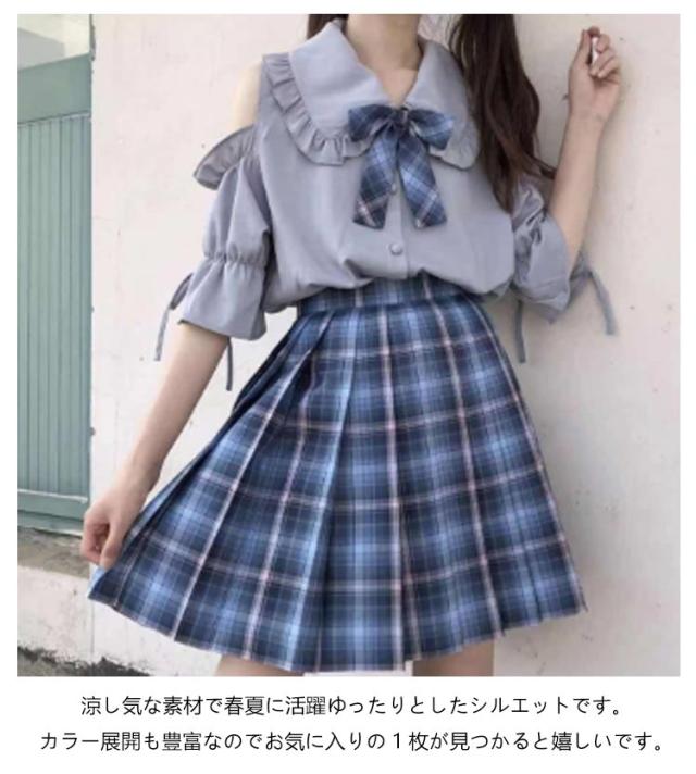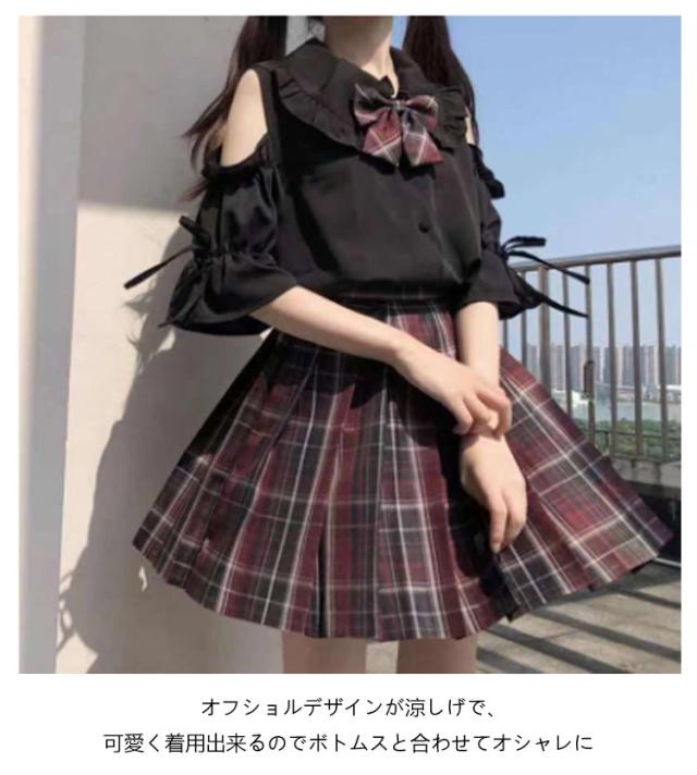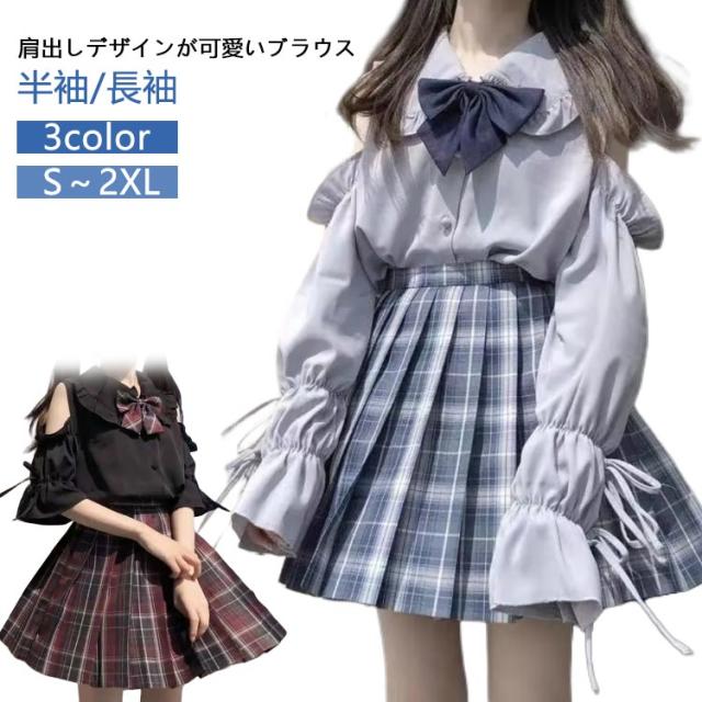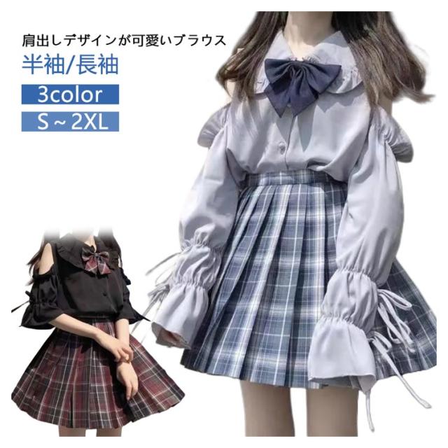 病みかわ 服 オフショルダー レディース シャツ レディースシャツ オフショルダー フリル ブラウス JK 量産型 地雷系 コスプレ 制服 肩出し レースアップ ロリータ 衣装 コスチューム 長袖 半袖 かわいい 学生 中学生 女子高生 制服 春 夏 秋
