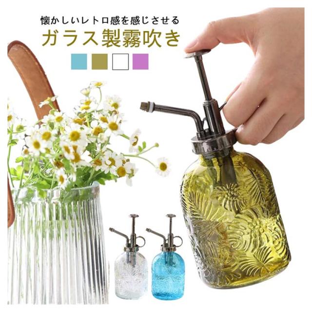 レトロ感 霧吹き 霧吹き スプレー容器 観葉植物 350ml ガラス 園芸用噴霧器 ミストスプレーボトル ミストスプレー 葉水 350ml スプレー ガーデニング 園芸 お掃除 おしゃれ かわいい 高級感 インテリア雑貨 花 植物 透明