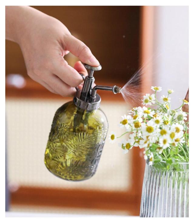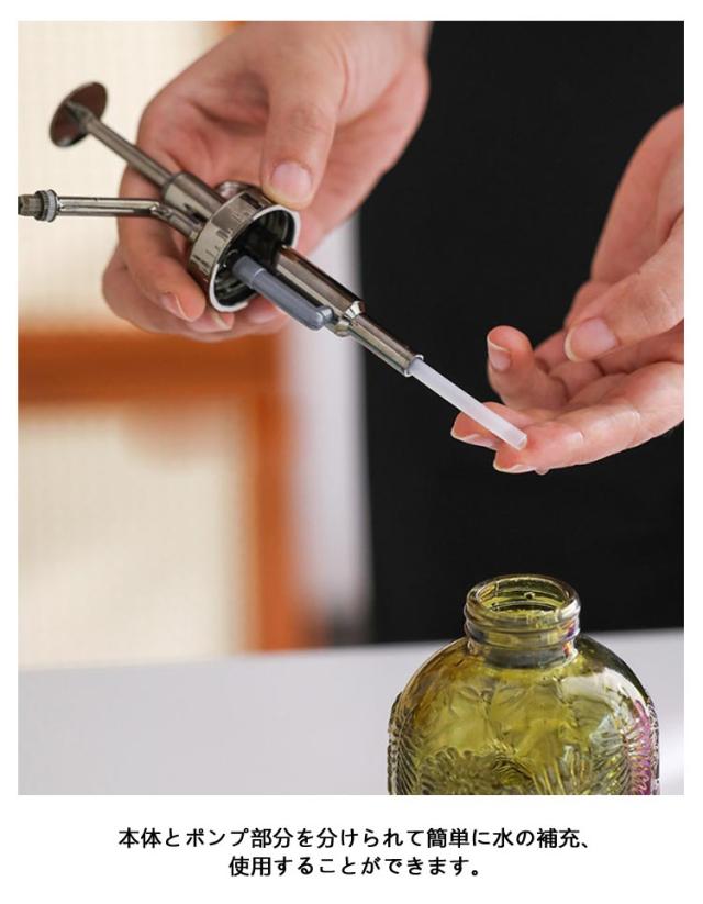 | 懐かしいレトロ感を感じさせるガラス製霧吹き ガーデニングや観葉植物のお手入れに使いやすいサイズ感。 どこか懐かしい気持ちを思い起こす優しいフォルムは、どんなお部屋にも自然に馴染んでくれます。 *商品特徴 ・重厚感溢れるガラス製 ・重さはたったの約273.5g ・手に持ちやすいサイズ感 ・どんなお部屋にも馴染むアンティーク調デザイン ガーデニングや観葉植物のお手入れに最適な使いやすいサイズ感。 アンティーク調のデザインは出しっぱなしにしていてもその佇まいが美しく、 インテリアとしても馴染みやすいです。 握りやすいハンドルデザインで実用性の高い形状。 ポンプを押したらミスト噴射をして、吹きかけたい部分へしっかりと水分を与えることができます。 日常的によく扱うものだからこそ、わずか273.5gという軽量で扱いやすさを追求した霧吹きになっております。 本体とポンプ部分を分けられて簡単に水の補充、使用することができます。 日々使うものだから使い勝手の良いシンプルな部品で完成いたします。 | |