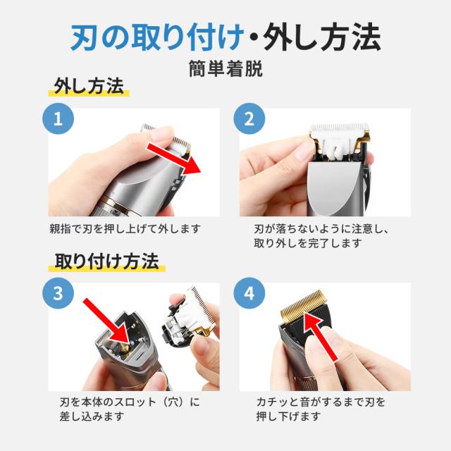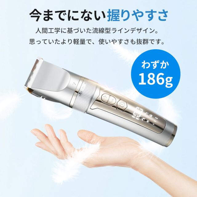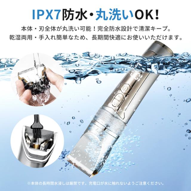 IPX7等級の防水設計を採用し、お風呂でのセルフカットも可能です。ヘッド部分は簡単に取り外せ、水洗いで清潔に保てます。