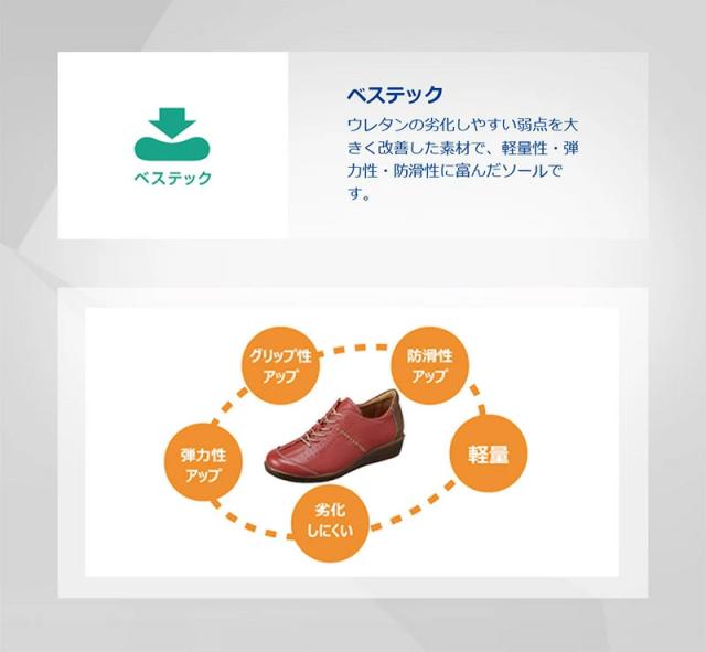 【ベステック(R)ソール】ウレタンの劣化しやすい弱点を大きく改善した素材で、軽量性、弾力性、防滑性に富んだソールです。