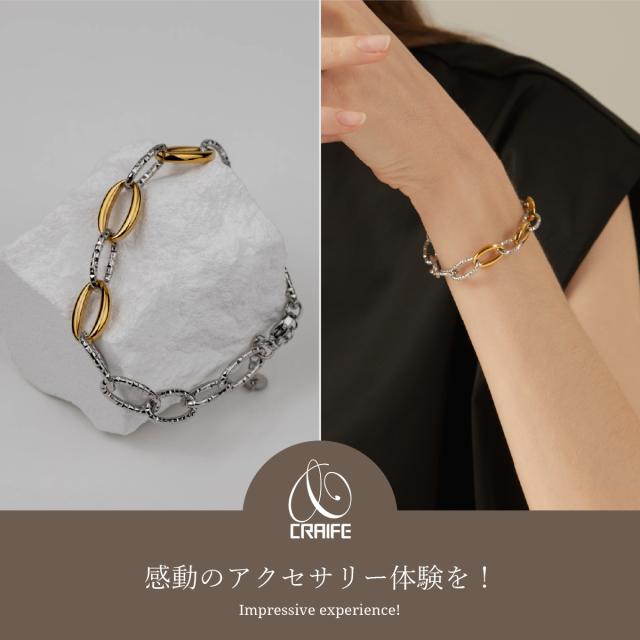 カテゴリ:ブレスレット バングル サージカルステンレス 316L 金属アレルギー対応 金アレ対応 K18 18K コーティング プレゼント ギフト 大人 かわいい スタイリッシュ モード 上品 カジュアル シンプル ラグジュアリー エレガント 普段使い デイリー パーティー オフィス 仕事 20代 30代40代 50代 大人女子 セレブ プチプライス ジュエリー バイカラー ゴールド シルバー 送料無料 プチプライス高見え CRAIFE クライフ