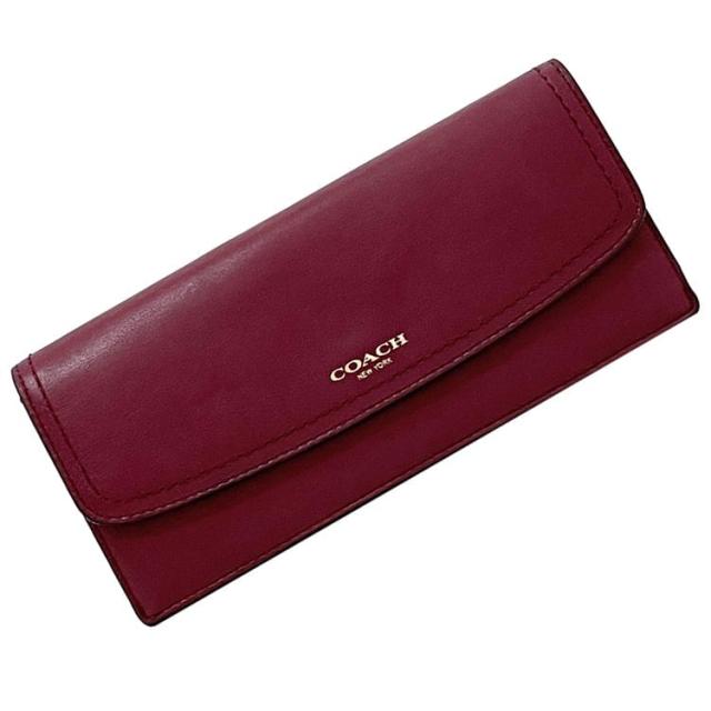 コーチ 二つ折り 長財布 ec-23717 ボルドー 財布 美品 レザー 中古 COACH ホック ロング ウォレット 定番 人気 女性 レディース 小物 革 シンプル お洒落 エレガント ワンポイント 無地 ロゴ ブランド財布 箱付き 箱 ゴールド金具 上品 ブランド 本物 鑑定済み