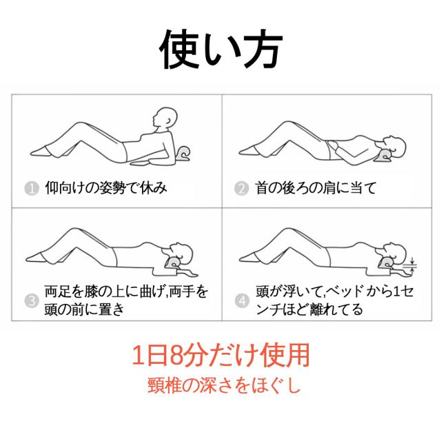 商品名頚椎牽引枕素材/材質EVA重量約200gサイズ17.5x22x12.5cmその他商品説明【肩・首がスッキリセルフ整体】