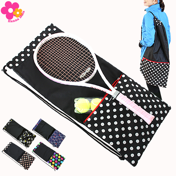 小物を入れるのに便利なファスナーポケット付。サイズも従来のものより大きくなって2〜3本ラケットが収納できます。 左右どちらの肩にかけてもデザインを楽しんで頂けるよう両面にブランドタグが付いています。撥水加工済み。