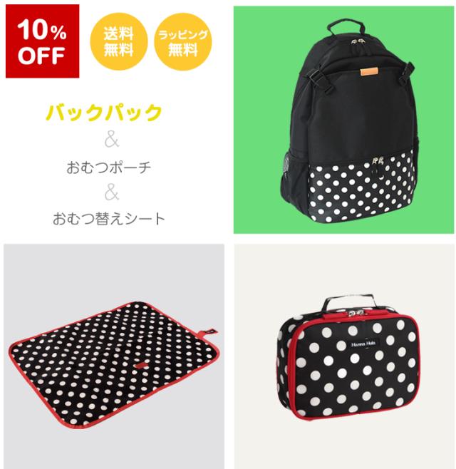マザーズバッグのセット/バックパック&おむつポーチ&おむつ替えシート ハンナフラ スペシャルセット/ネコポス不可