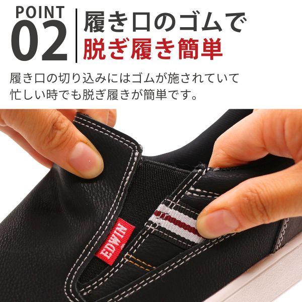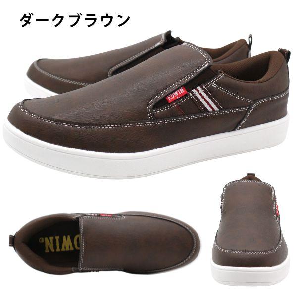 エドウィン スニーカー メンズ 靴 スリッポン 紐なし 黒 ブラック 茶色 ダークブラウン 軽量 軽い 通勤 スリット フェイクレザー ブランド 仕事 きれいめ 疲れない EDWIN EDW-7050