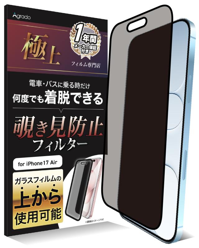 iPhone 17 Air 覗き見防止 フィルムの上からでも貼れる 着脱式フィルター さらさら ブルーライトカット かんたん 安心 プライバシー 全面保護 スマホフィルム アンチグレア のぞき見防止 保証 アイフォン アイホン ポイント消化 除き見