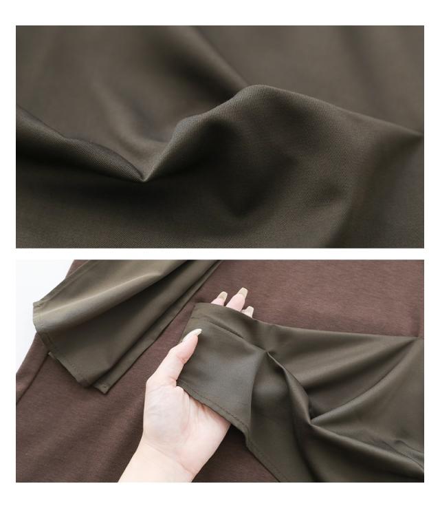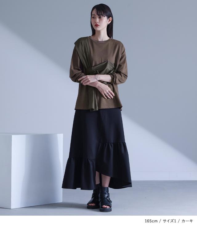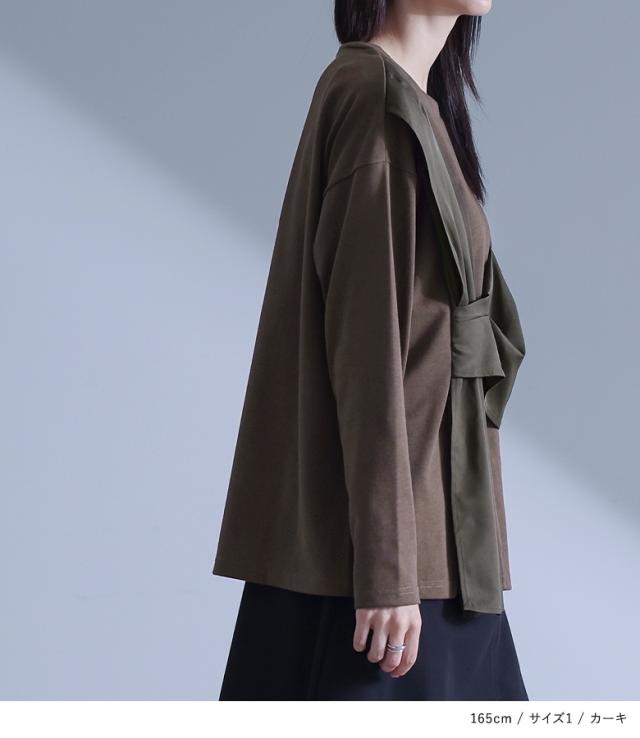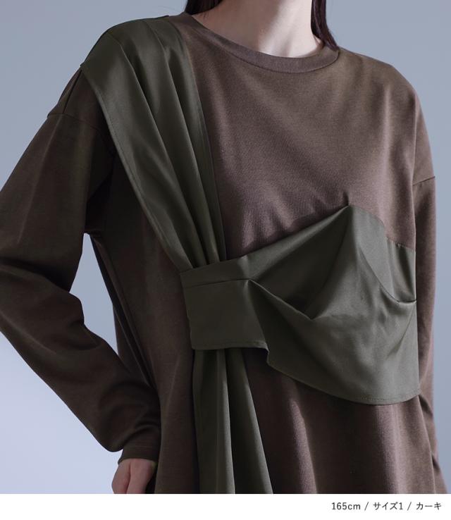 カットソー 長袖 レディース トップス ロンT クルーネック 異素材 ドッキング タック 綿混 微光沢 ゆったり 楽ちん プルオーバー 秋 春 【TP】 Tシャツ デザインTシャツ デザインカットソー デザインT ショート丈 ミディ丈 ミドル丈 ドロップショルダー 無地 配色 コットン混 レイヤード 重ね着 着回し おうちで洗える 冬 ロングシーズン カジュアル シンプル モード マニッシュ キレカジ フェミニン ニュアンス エフォートレス ゆる Sサイズ Mサイズ Lサイズ LLサイズ 3Lサイズ XLサイズ ぽっちゃり 体型カバー 大きいサイズ プラスサイズ 10代 20代 30代 40代 50代 60代 低身長 高身長 女子会 オフィス 通勤 通学 お買い物 お出掛け 旅行 リゾート レジャー おしゃれ お洒落 トレンド 流行 kOhAKU コハク 大人女子 大人可愛い お洒落可愛い 大人カジュアル ラフ スタイリッシュ 洗練 エッジィ 上品 きれいめ かっこいい osharewalker オシャレウォーカー おしゃれうぉーかー グリーン 緑 カーキ ブラック 黒[ID]13to09n[kOhAKU布帛ドッキングカットソー]