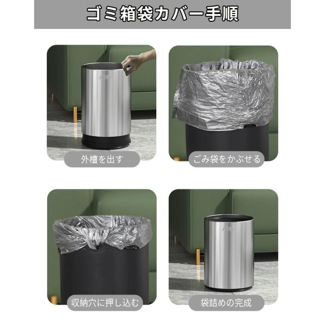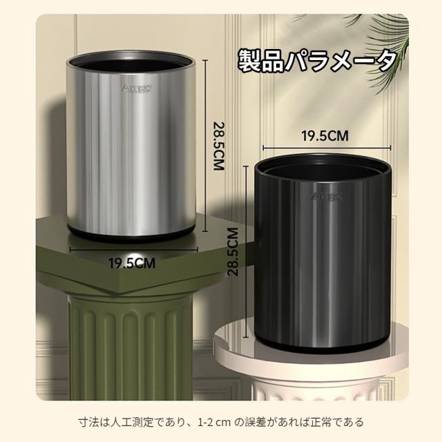 ゴミ箱 おしゃれ ごみ箱 素材/材質ステンレス鋼サイズ約19.5*28.5CM(サイズについて:多少の誤差をご了承ください) 容量約9Lカラーシルバー、ブラック、ダークグレーご注意事項◆モニターにより色の見え方が実際の商品と多少異なることがございます。あらかじめご了承くださいませ。◆洗濯の際は色落ちの可能性がありますので単品手洗いでお願いいたします。◆商品生地、色合い、装飾部品の色やデザインなど、生産時期によって、差異が生じます。そのため、同じ商品を複数点ご購入の場合、場合によって色、コサー ジュのデザイン等差異がでる場合がございます。ご了承ください。◆ご購入前に、【サイズ】・【カラー】・【価格】・【数量】・【お客様情報】等、ご注文内容にお間違いがないか必ずご確認ください。