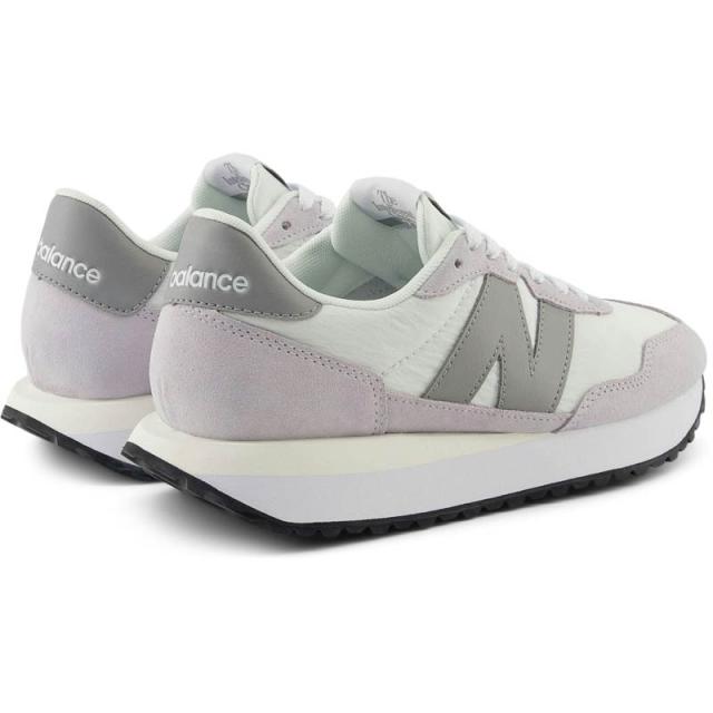 70年代から80年代のランニングシューズのスリム&ロープロファイルなシルエットを現代風にリファインし、印象的なビッグNロゴで仕上げたウィメンズモデル「WS237」に新色が登場。スエード/ナイロン素材のアッパーを、ニューバランスのコアカラーであるグレーとベージュの淡いカラーで彩りました。