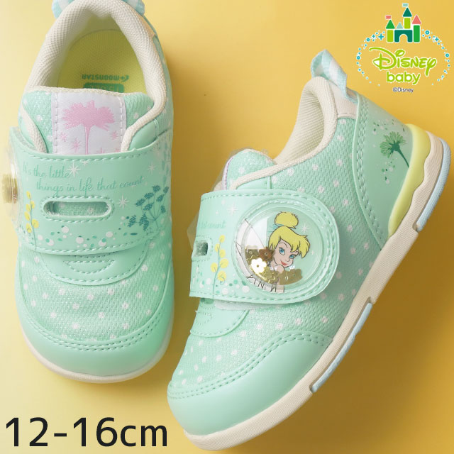 送料無料 ファーストシューズ ベビーシューズ ローカット キッズ 女の子 AW 秋冬 新作 秋新作 冬新作 人気 流行 定番 2025 ムーンスター MoonStar ディズニー Disney Disney DN B1318 子供靴 ティンカーベル マジックテープ ベルクロ ミント ドット フラワー ビーズ入り