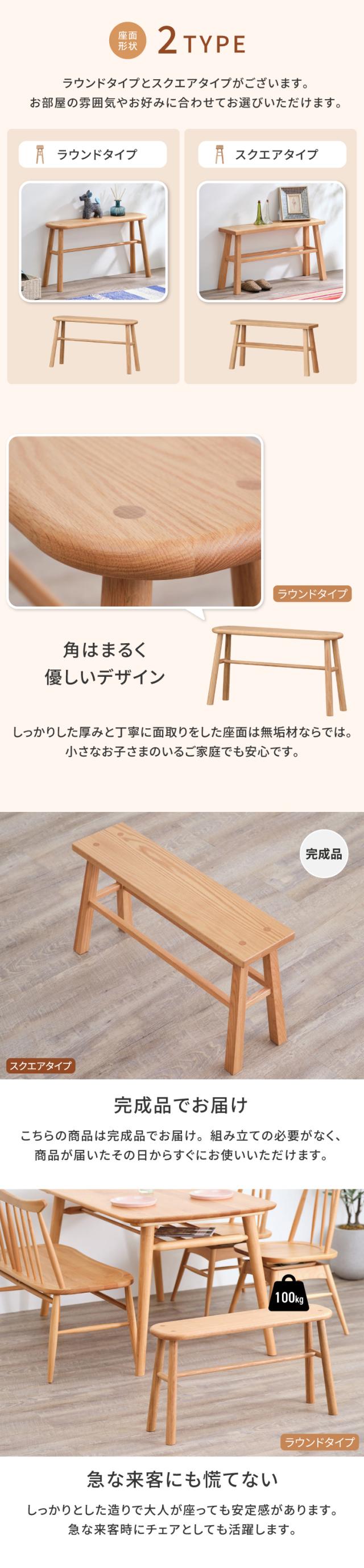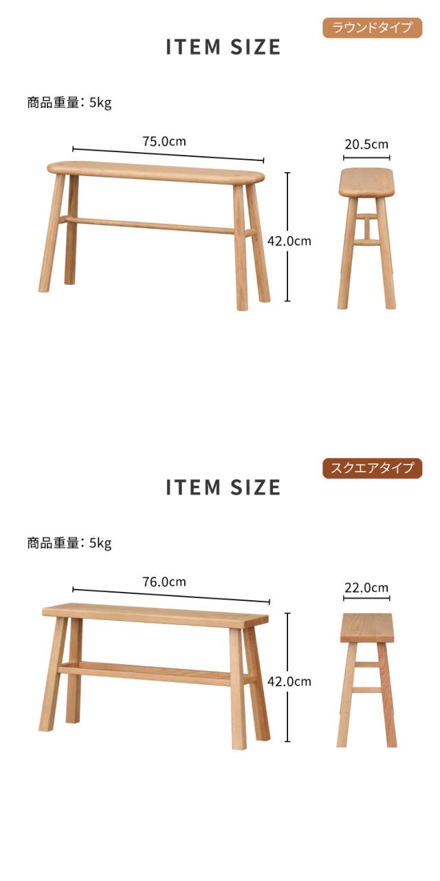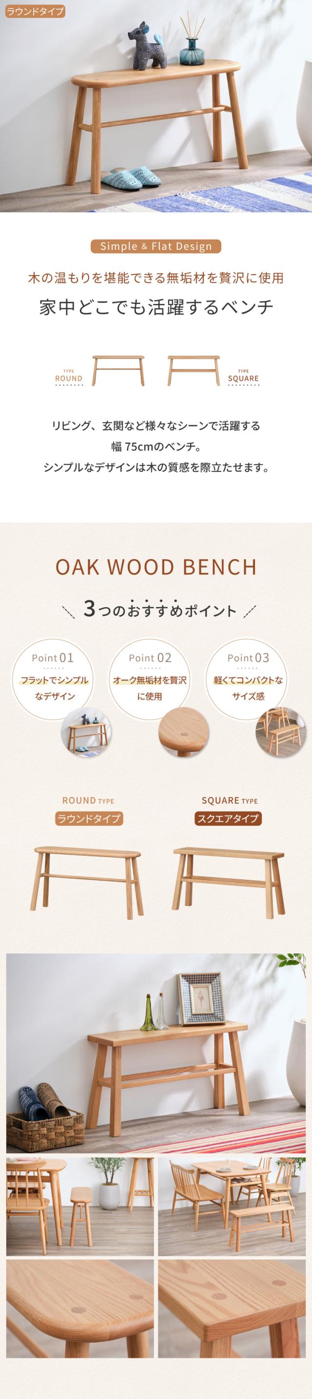 【公式】ベンチ 木製 無垢材 ダイニングベンチ 背もたれなし オーク材 2人 75cm ブラウン 1脚 ダイニング ベンチ 椅子 チェア ディスプレイスペース 玄関 北欧 シンプル おしゃれ 完成品 LUSTE BENCH 75 ISSEIKI