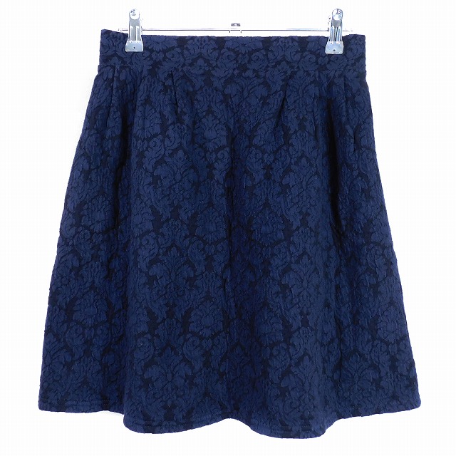 【中古】ニコアンド Niko and.. フレアスカート ミニ タック ウエストゴム コットン 総柄 紺 ネイビー レディース