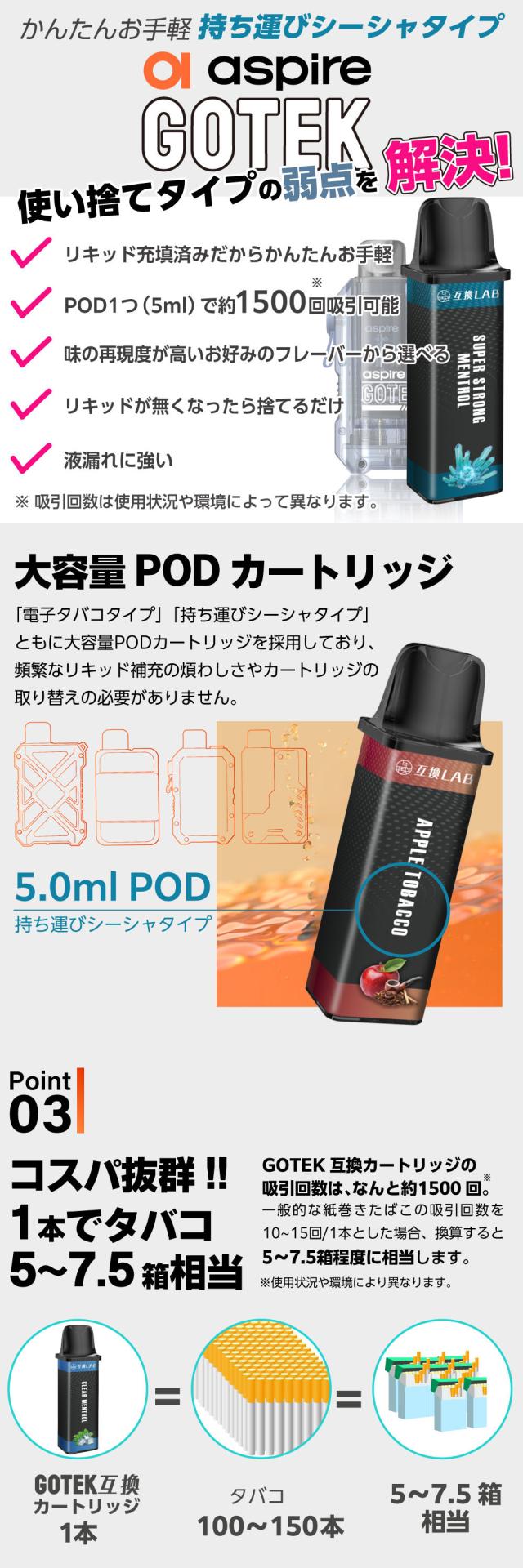 【吸いごたえ成分配合】 互換LAB GOTEK 互換カートリッジ リキッド Aspire アスパイア ゴーテック 互換 カートリッジ 電子タバコ VAPE ベイプ リキッド 持ち運び シーシャ POD GOTEK X ゴーテックX エックス GOTEK PRO ゴーテック プロ アスパイア ゴーテック フレーバー